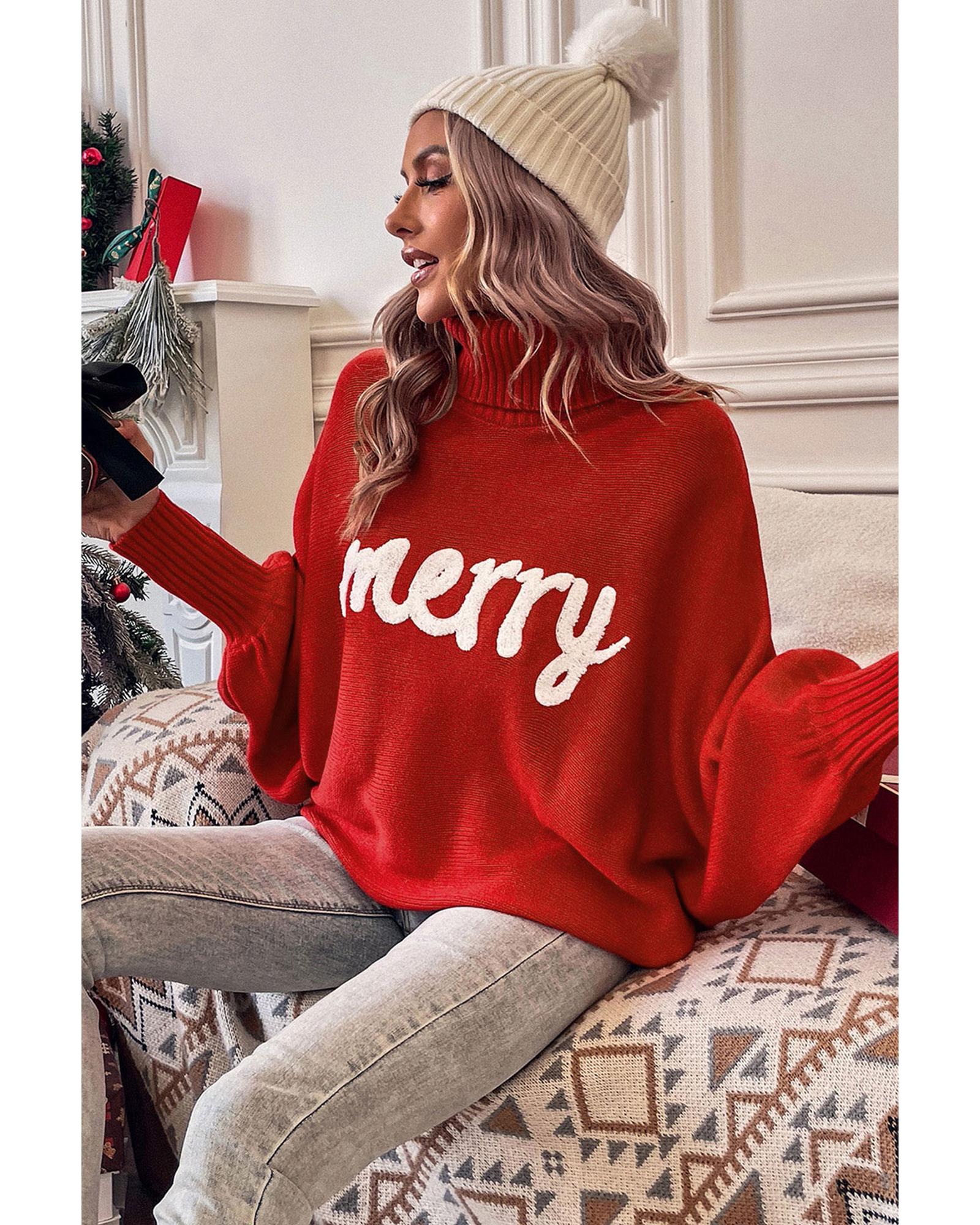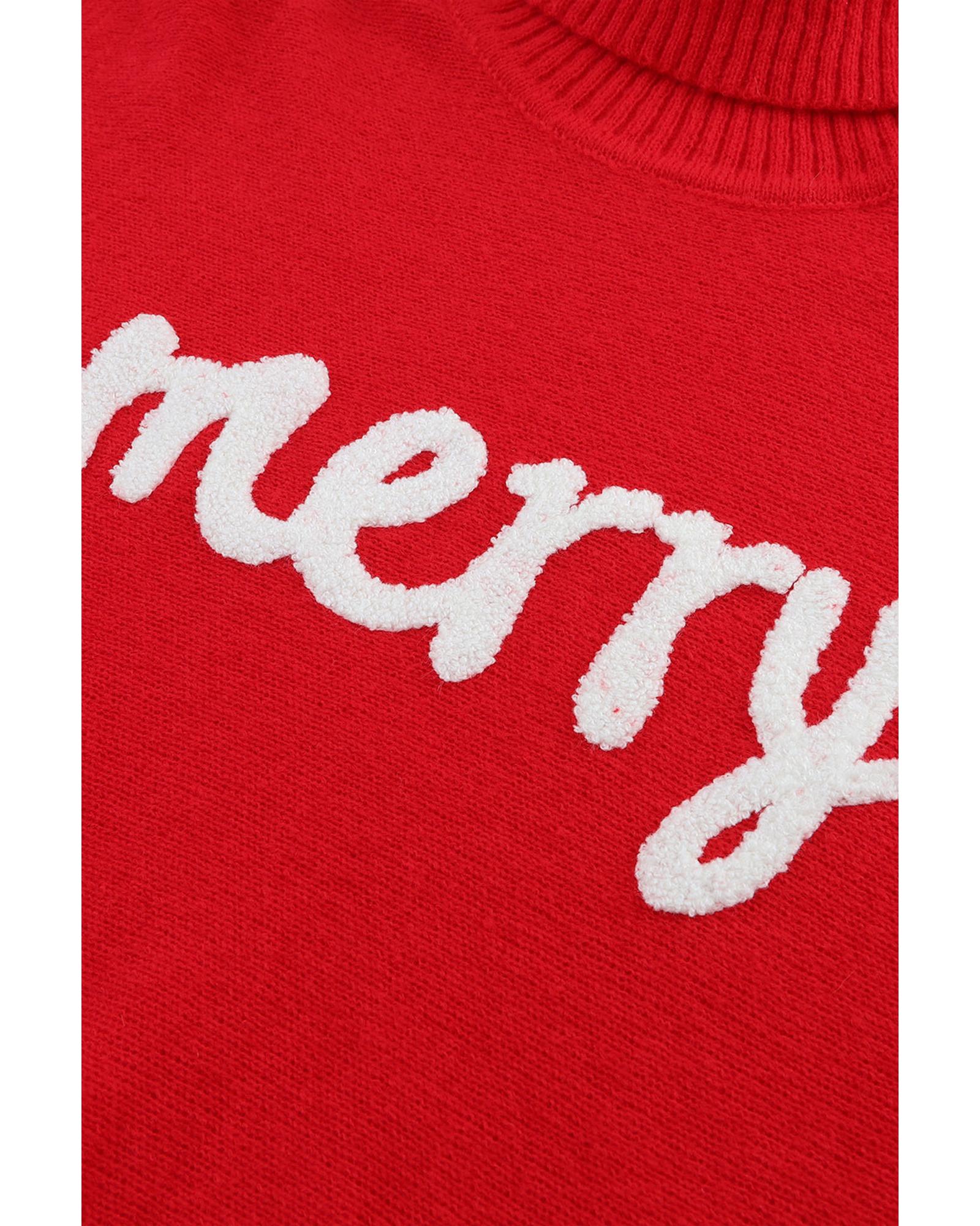 Azura Exchange Red Merry Letter Embroidered High Neck Sweater - M