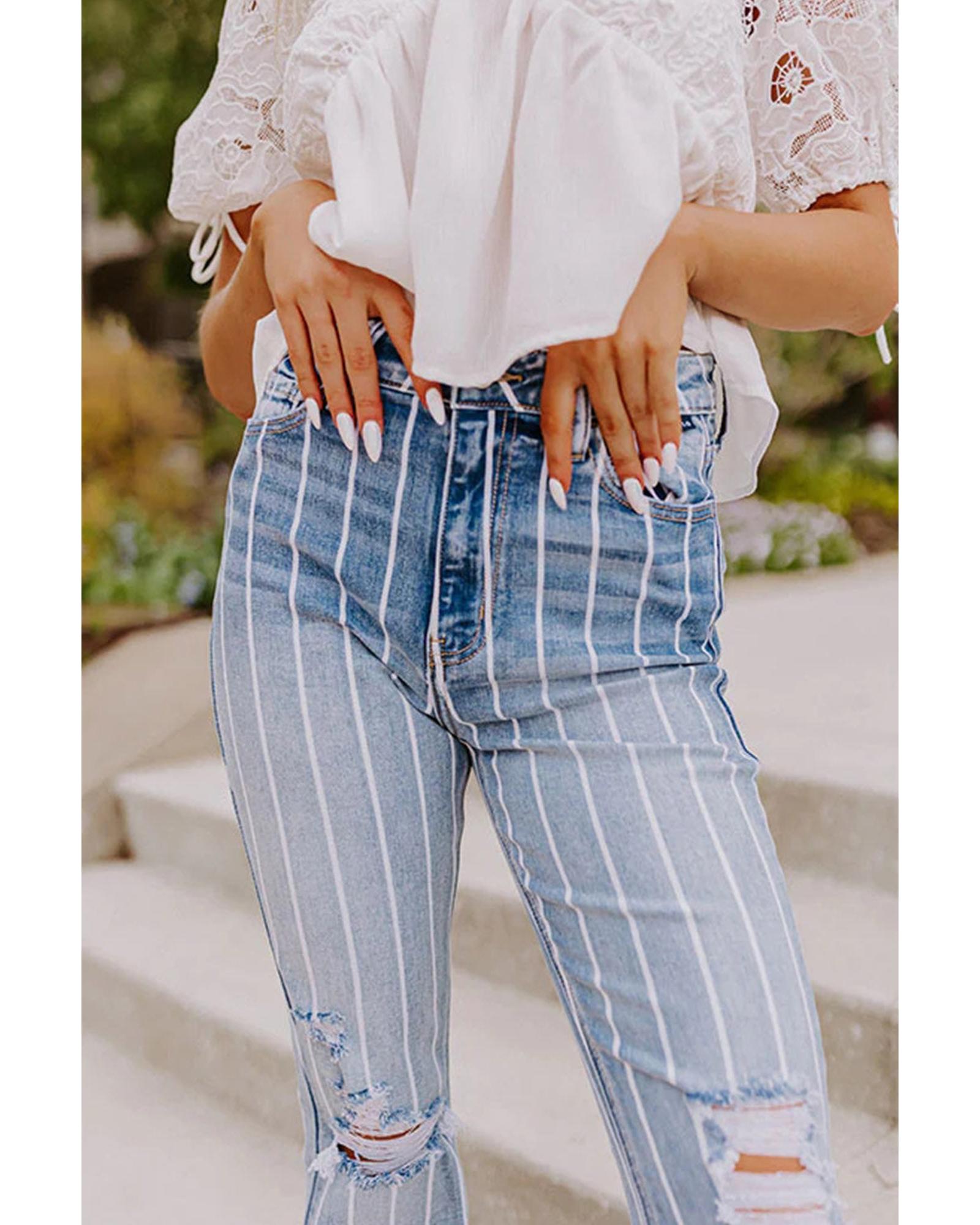 Azura Exchange Vertical Striped Ripped Flare Jeans - 14 US
