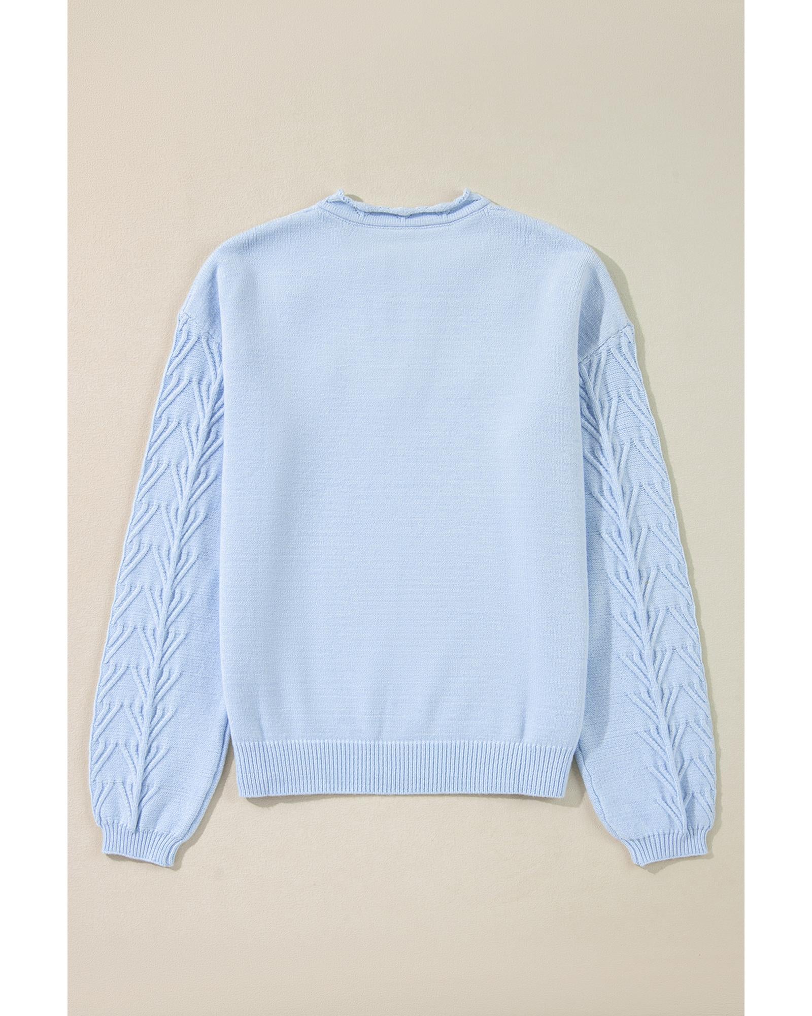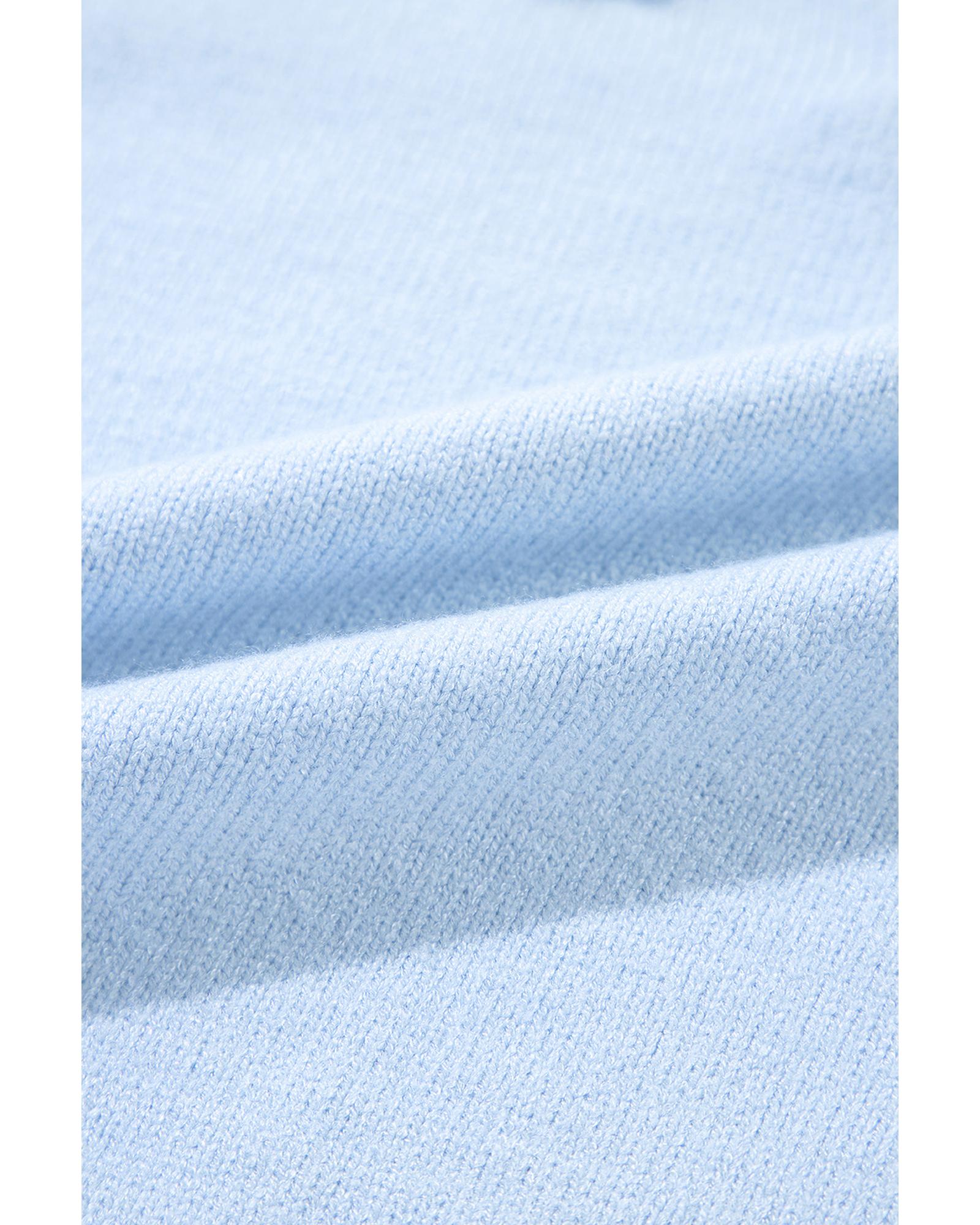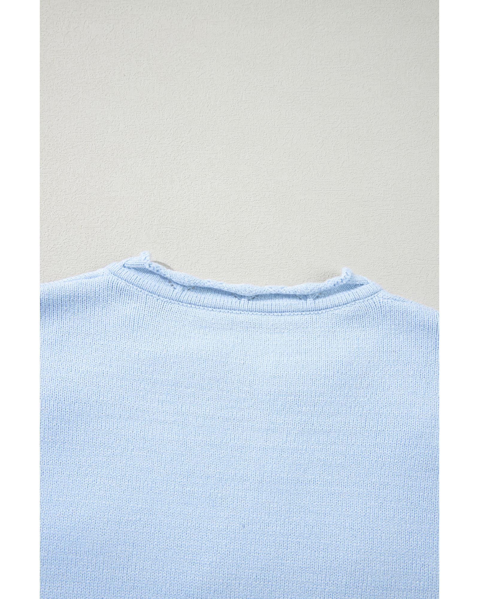 Beau Blue Flower Detail Knitted Notched Neck Sweater - S