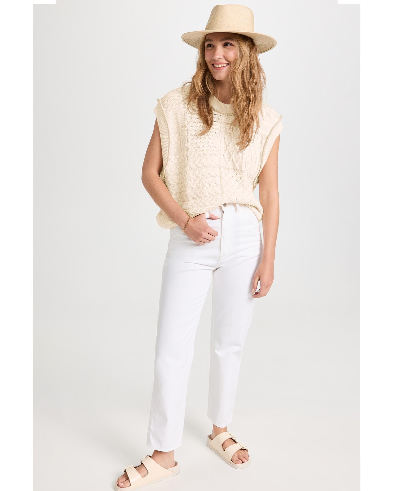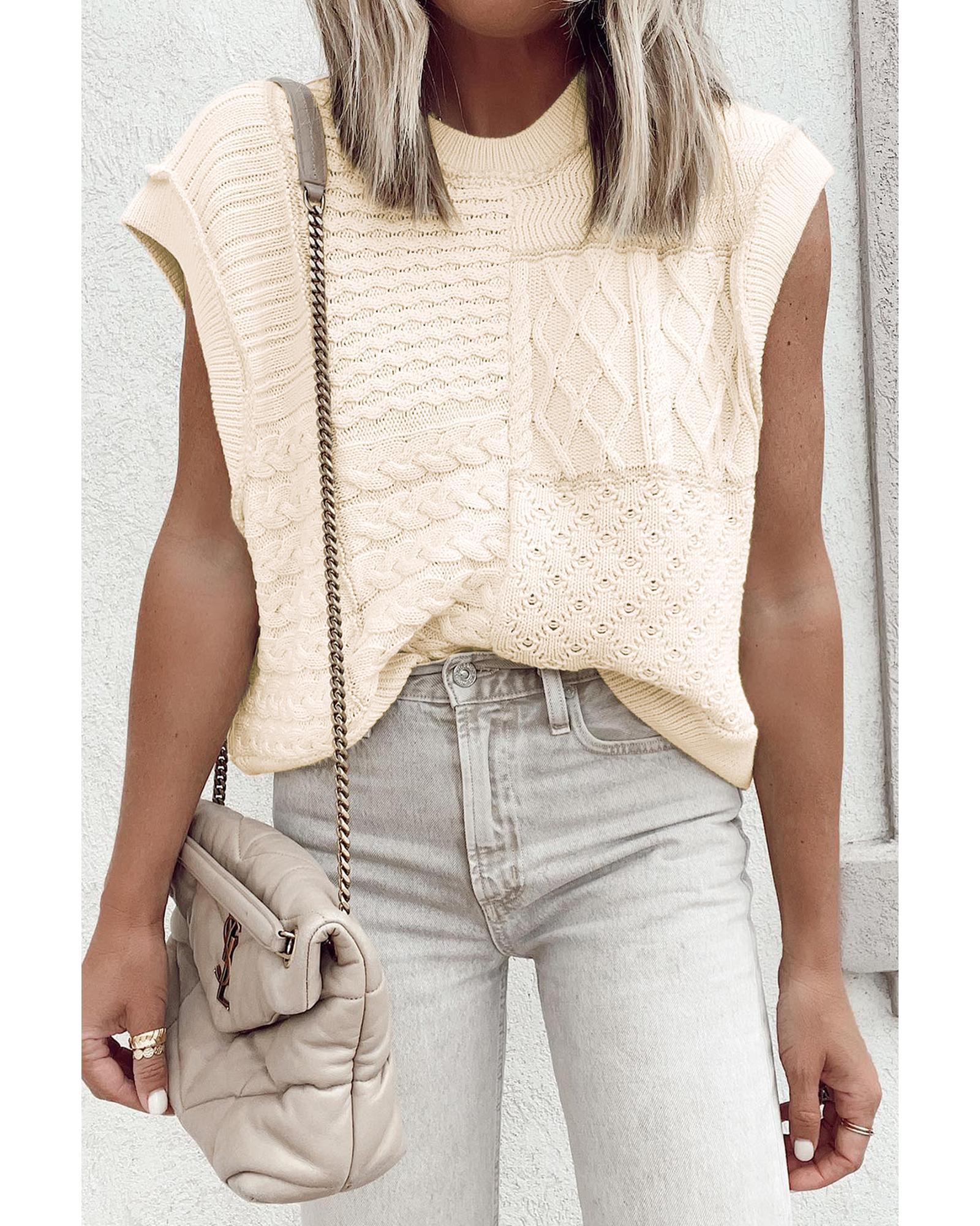 Beige Cable Knit Dolman Armholes Sweater Tank - M