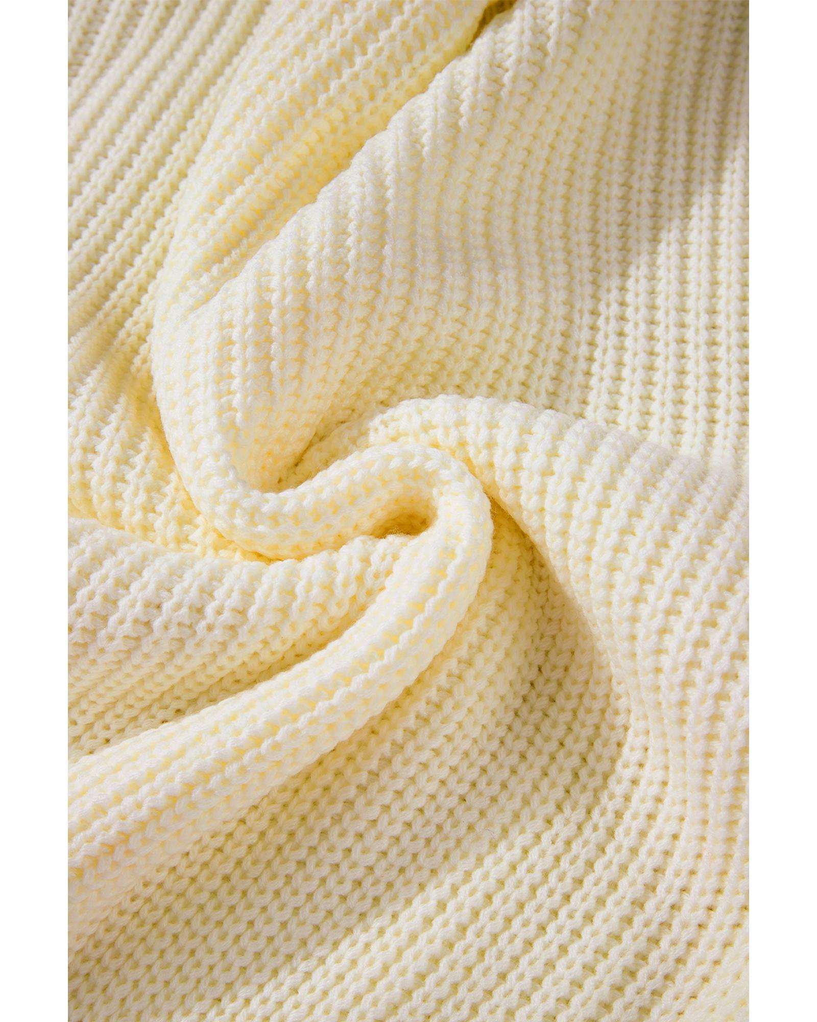 Beige Cable Knit Pumpkin Raw Hem V Neck Loose Sweater - L