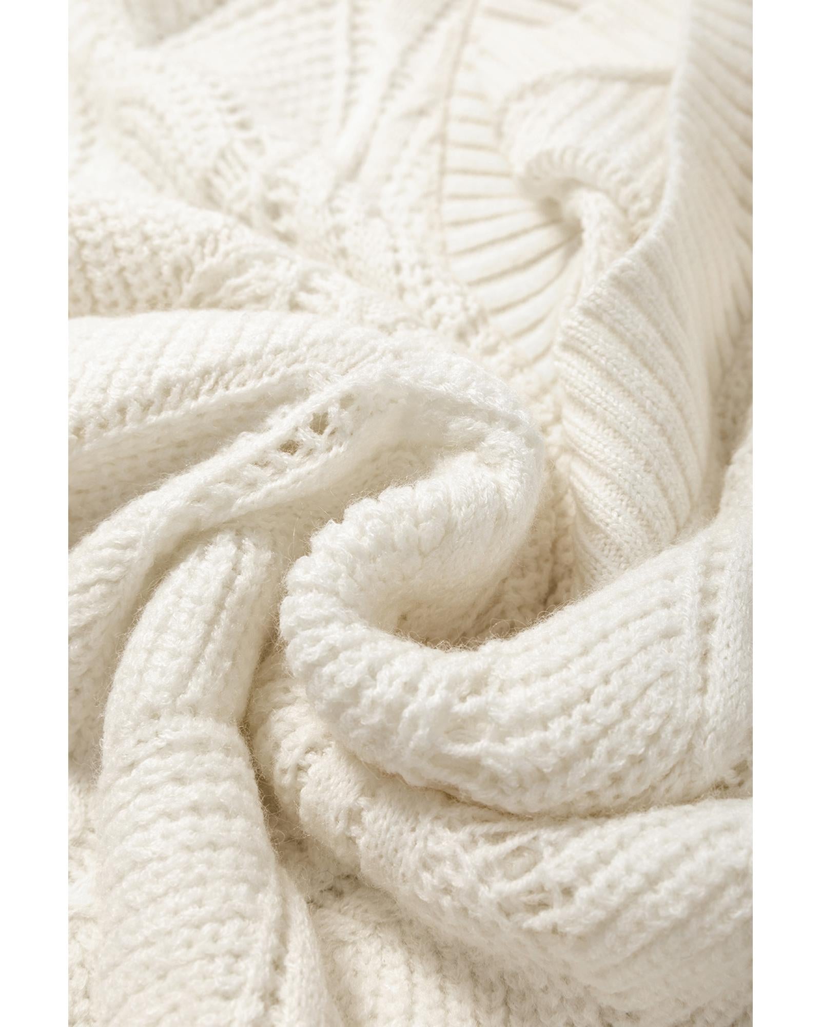 Beige Hollow Out Knit V Neck Drop Shoulder Sweater - M