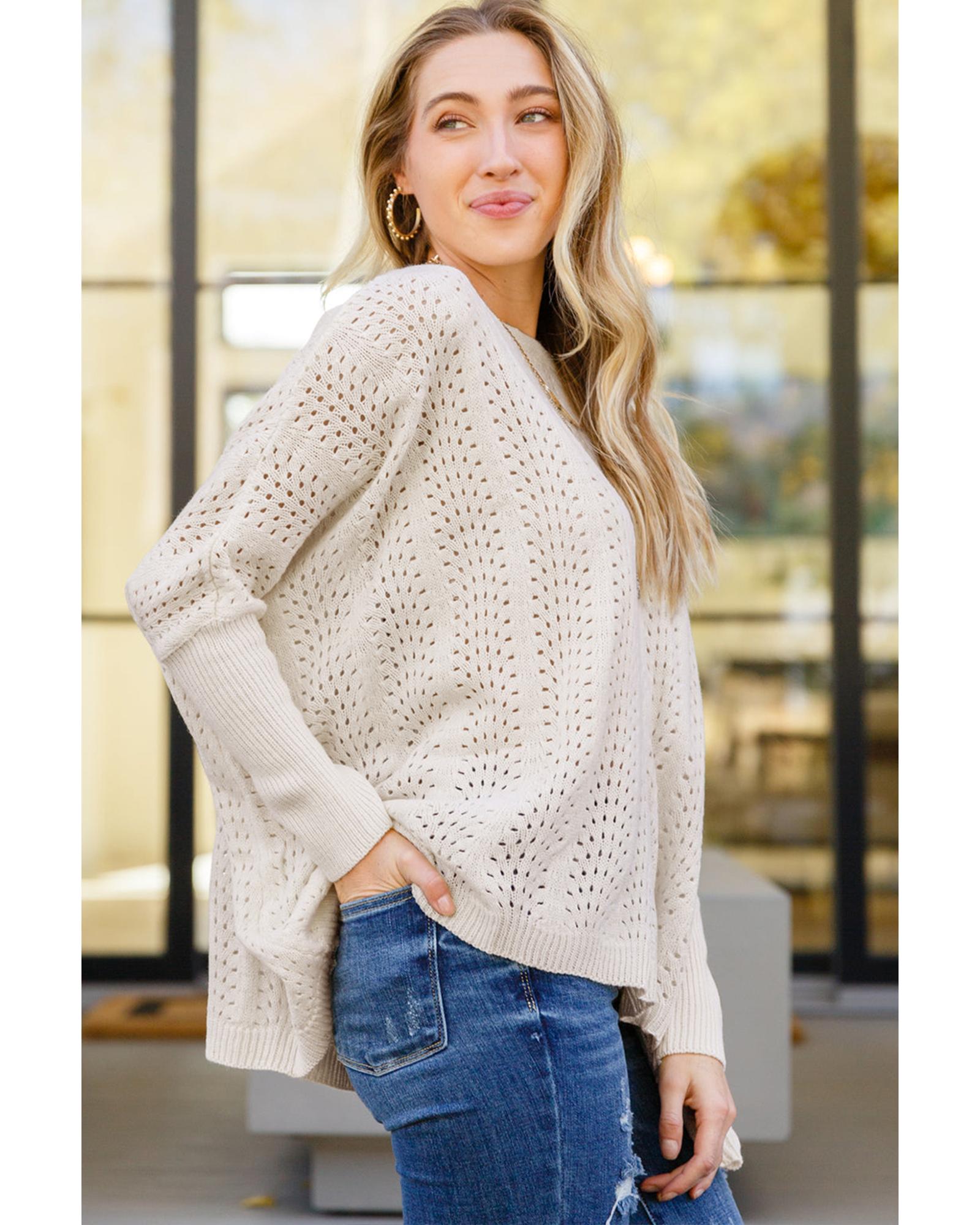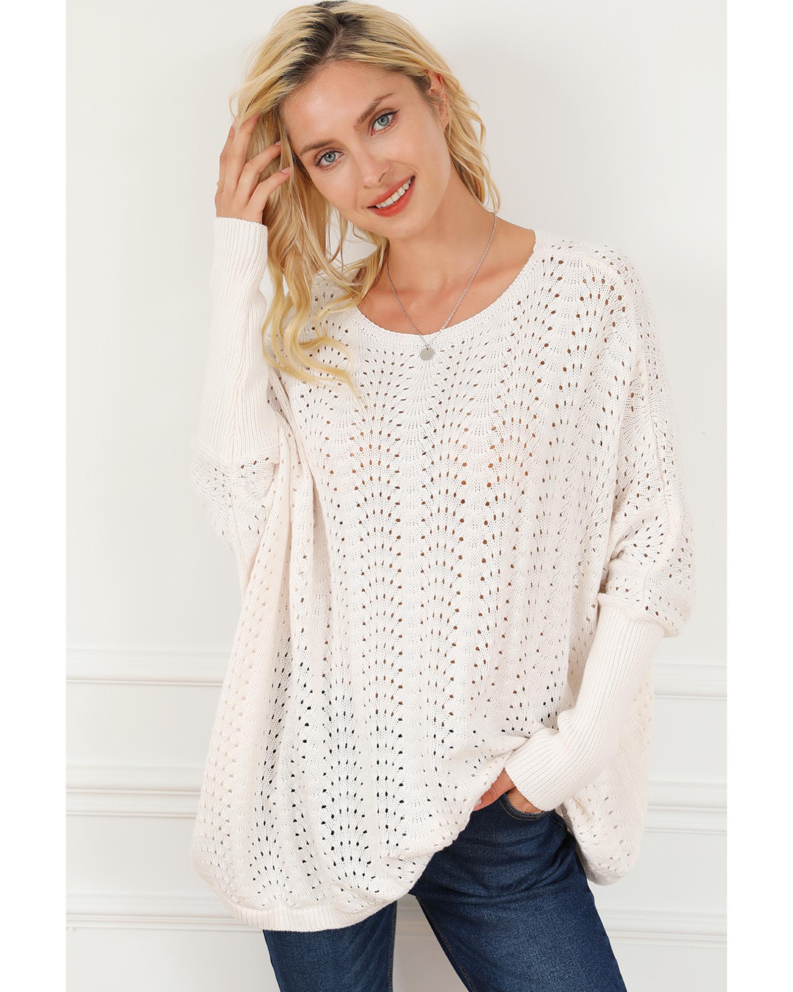 Beige Ribbed Hollow Knit Dolman Sleeve Sweater - XL
