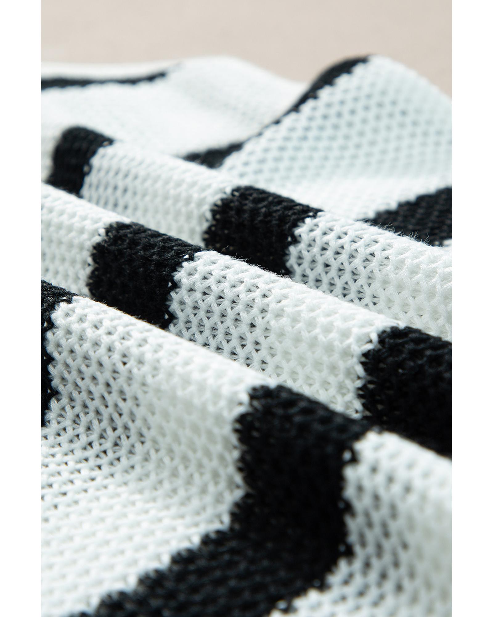 Beige Stripe Loose Knit Fringe Tank Top - XL