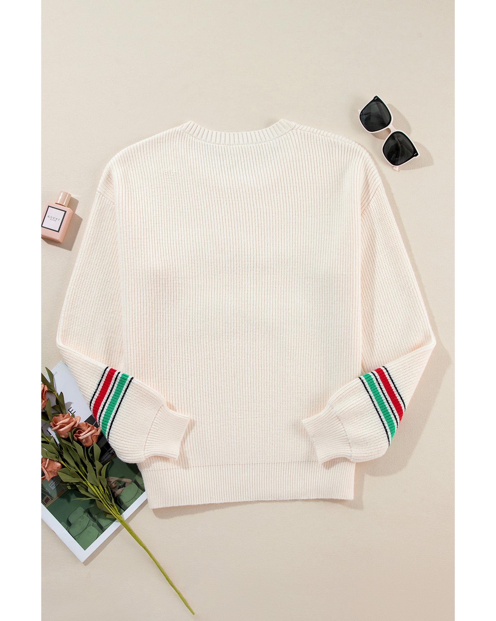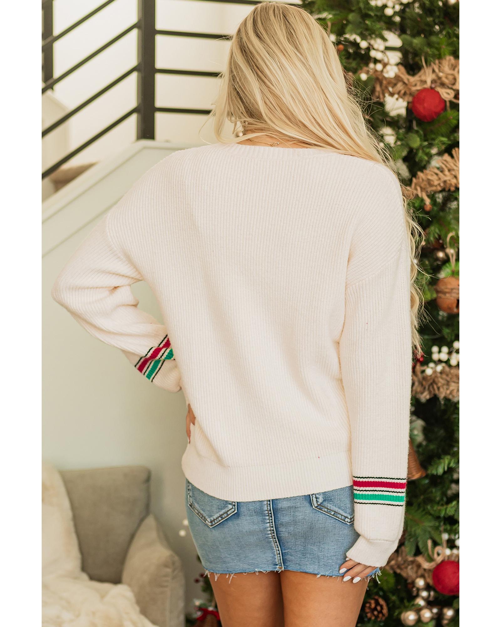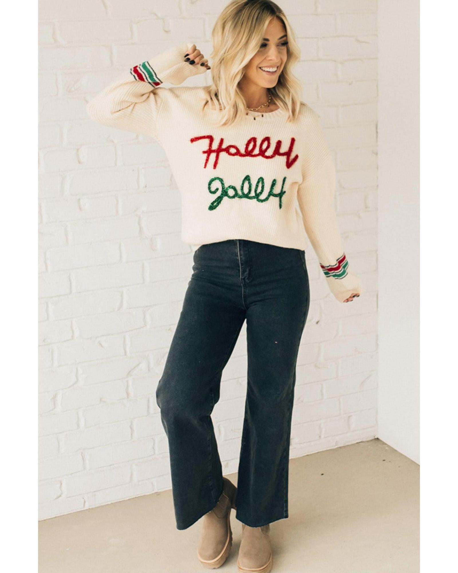Beige Tinsel Holly Jolly Graphic Classic Sweater - XL