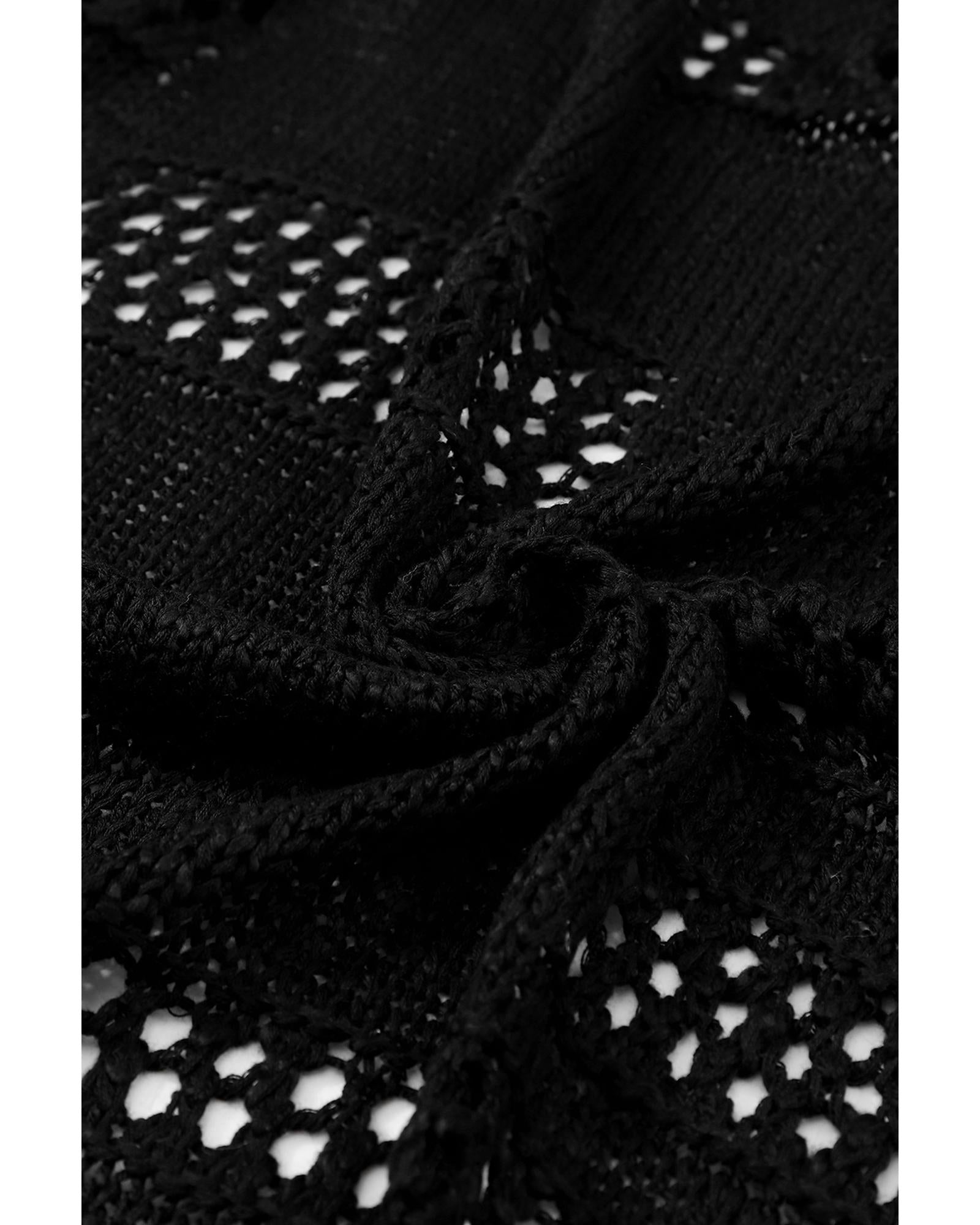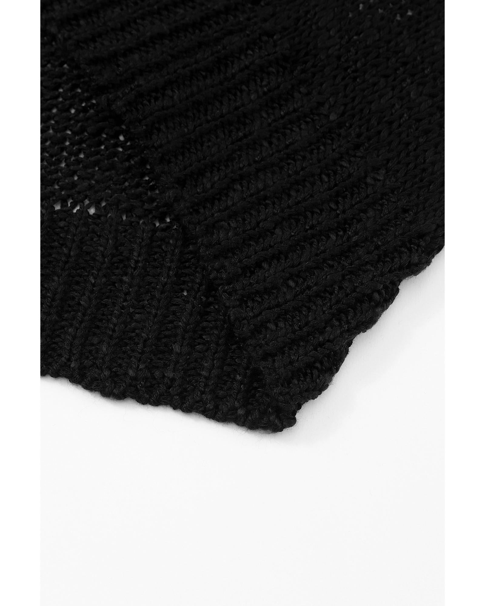 Black Casual Hollowed Knit Dolman Sleeve Cardigan - S
