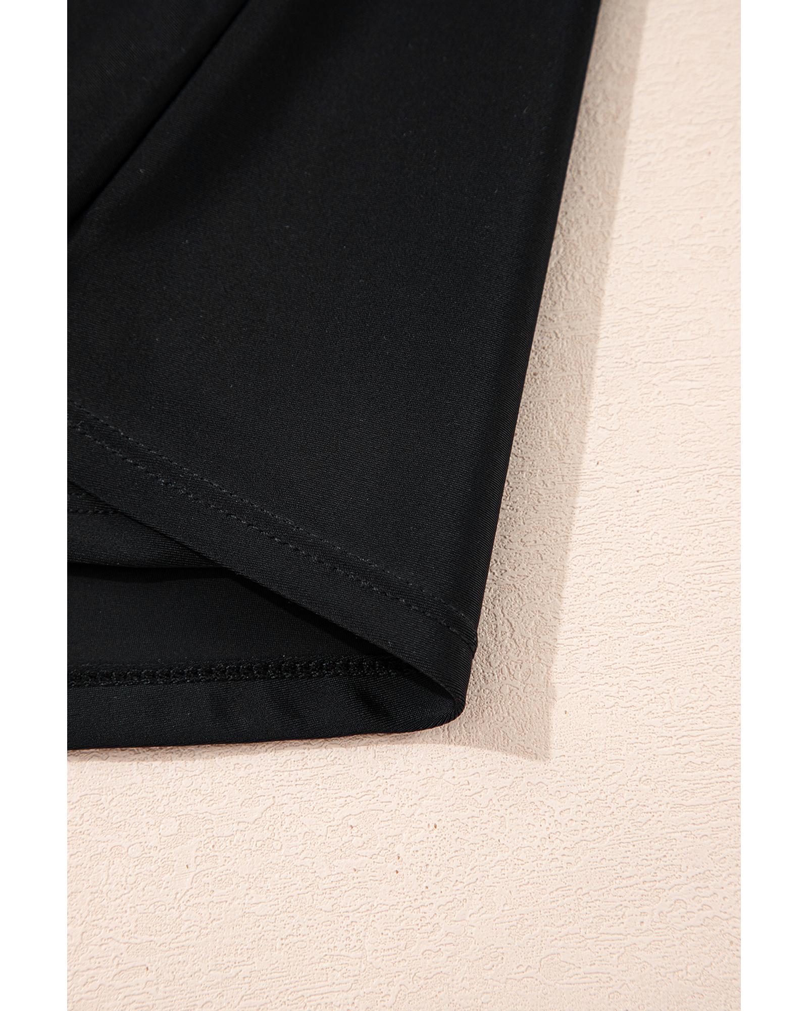 Black Crossed V Neck Adjustable Strap Babydoll Tankini Top - S