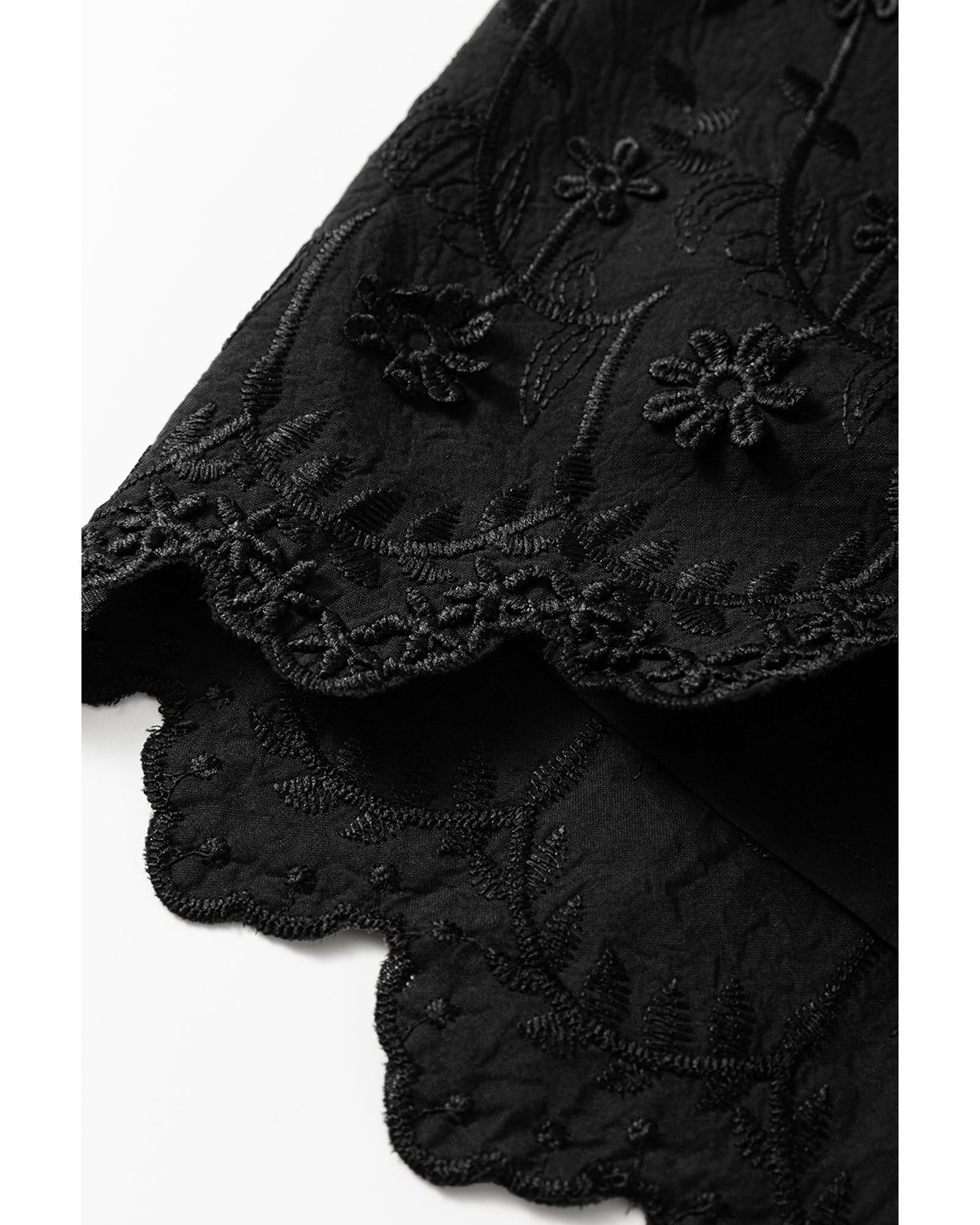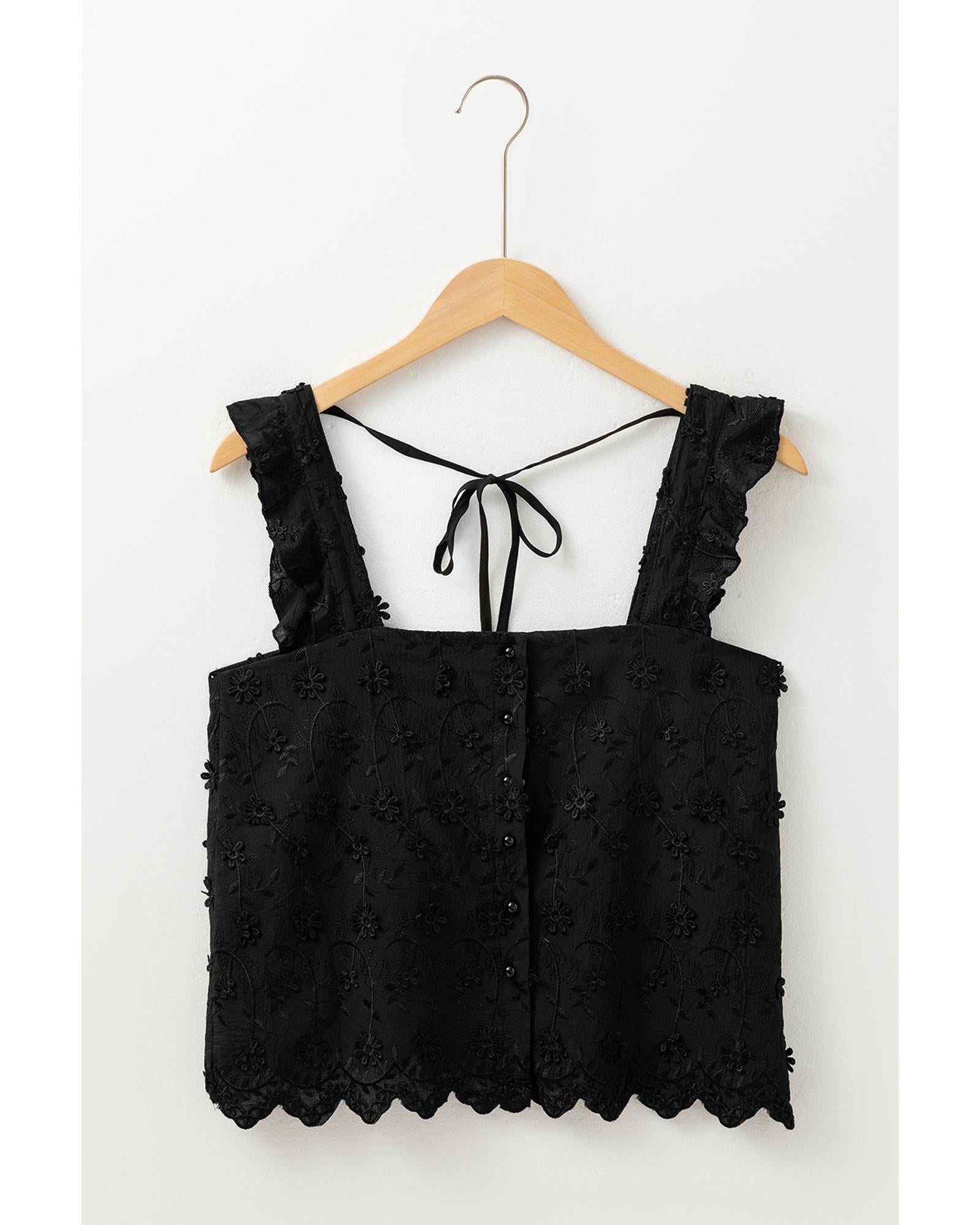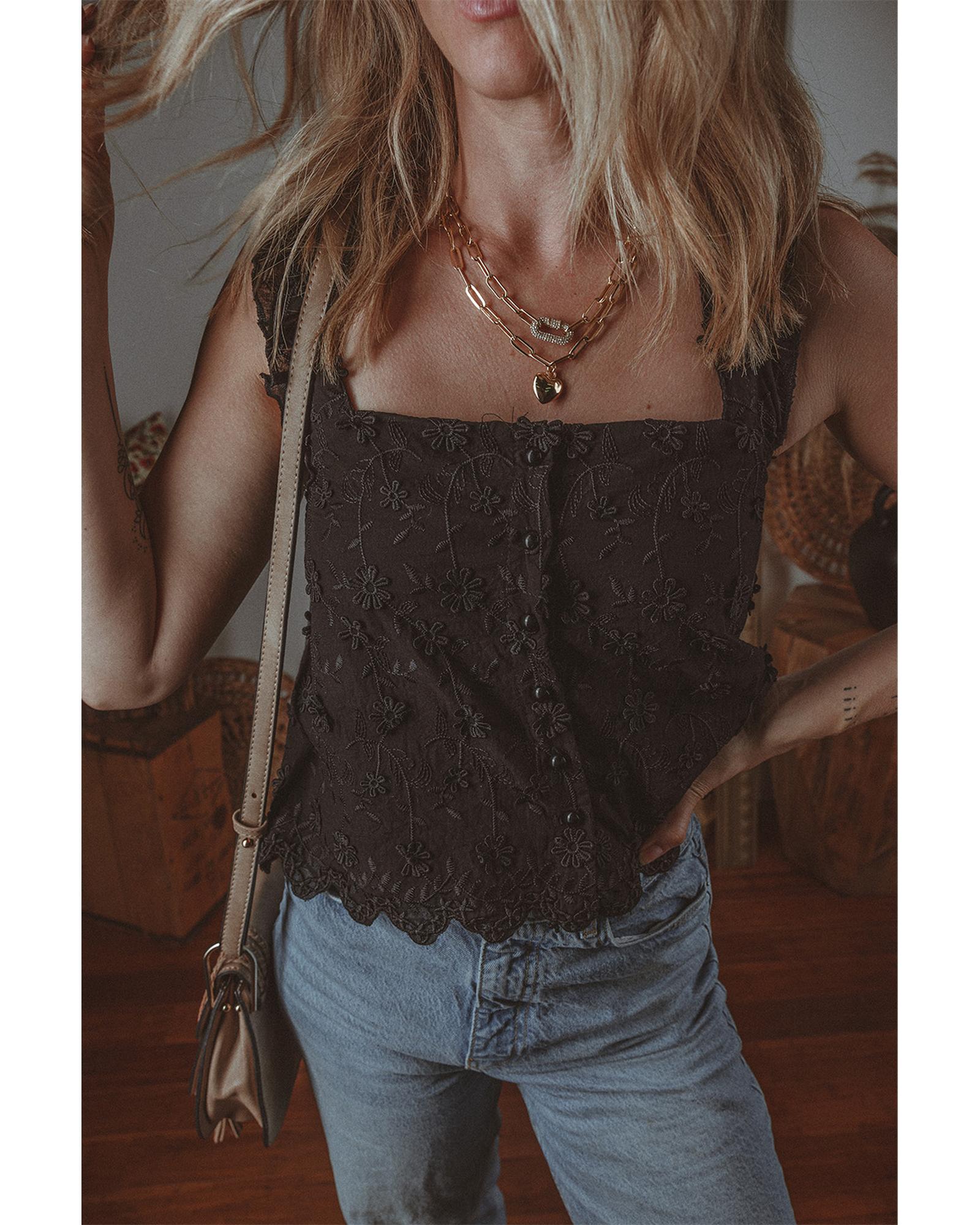 Black Floral Embroidered Buttoned Square Neck Tank Top - XL