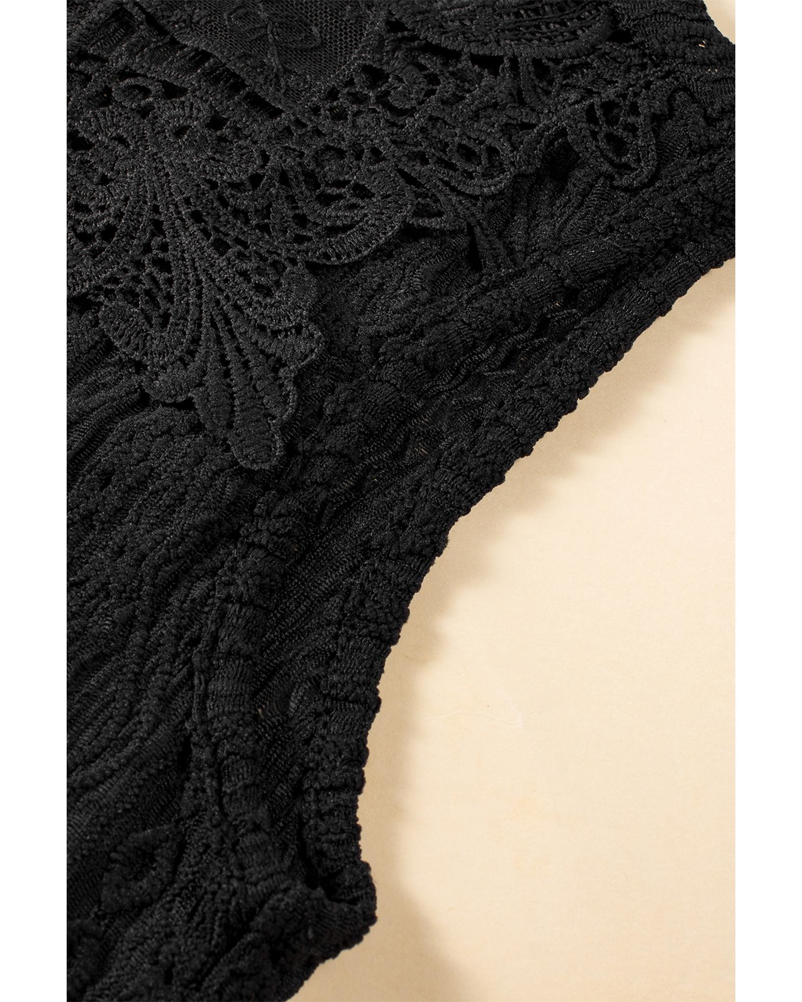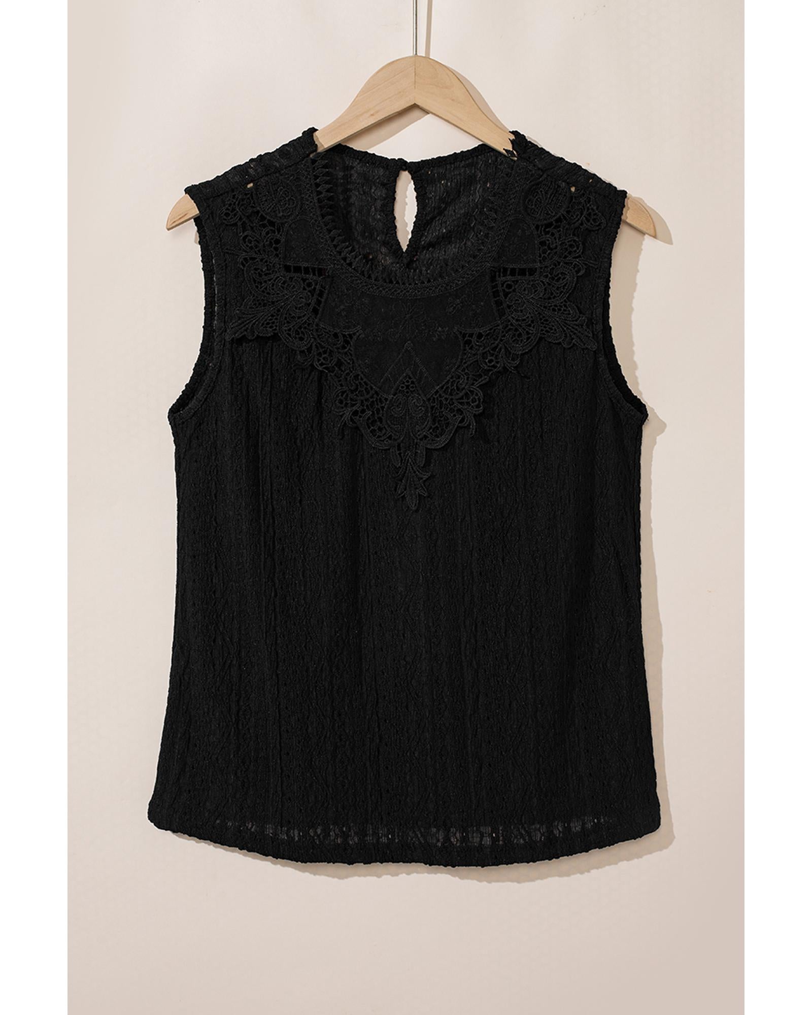 Black Guipure Lace Crochet Keyhole Back Tank Top - L