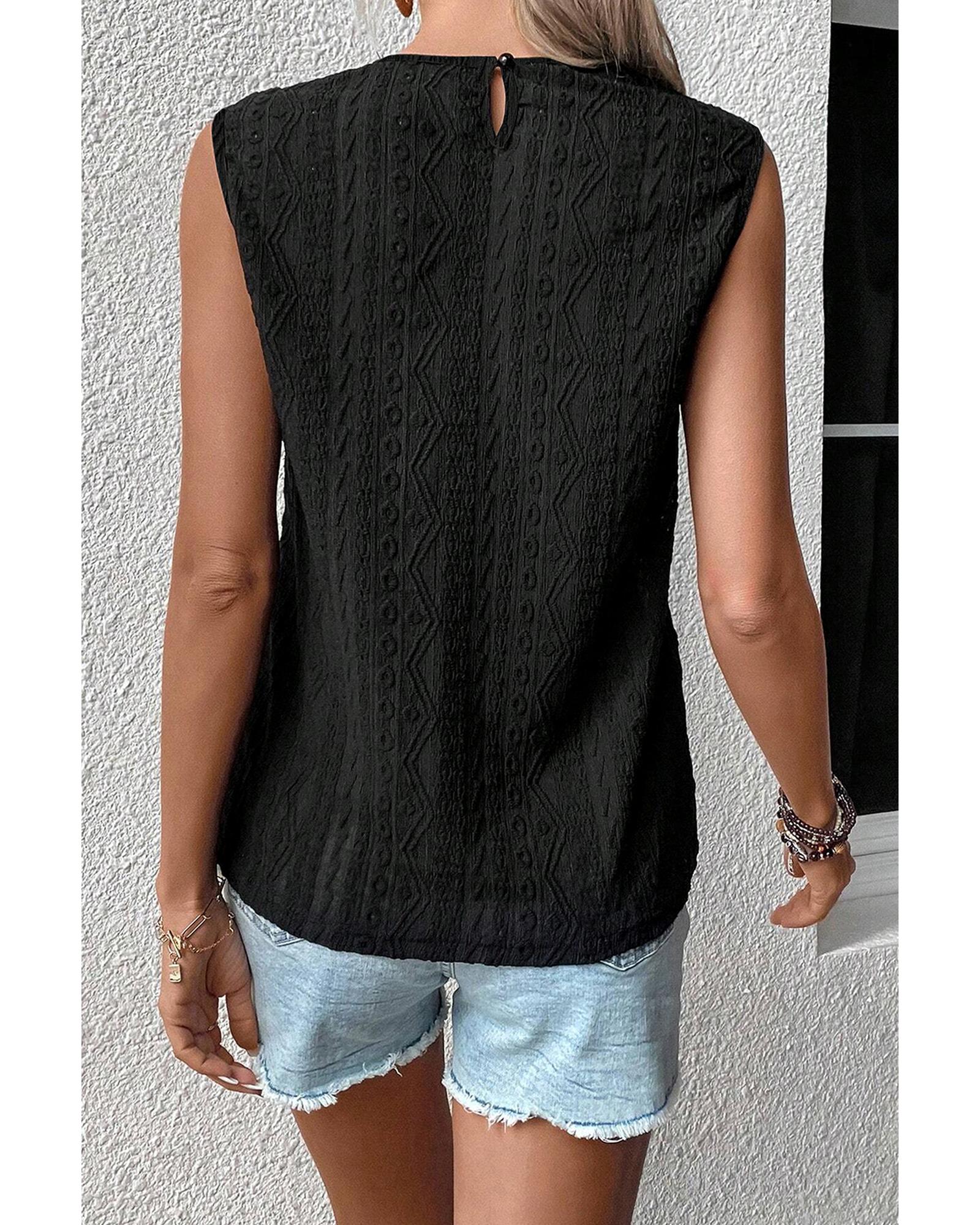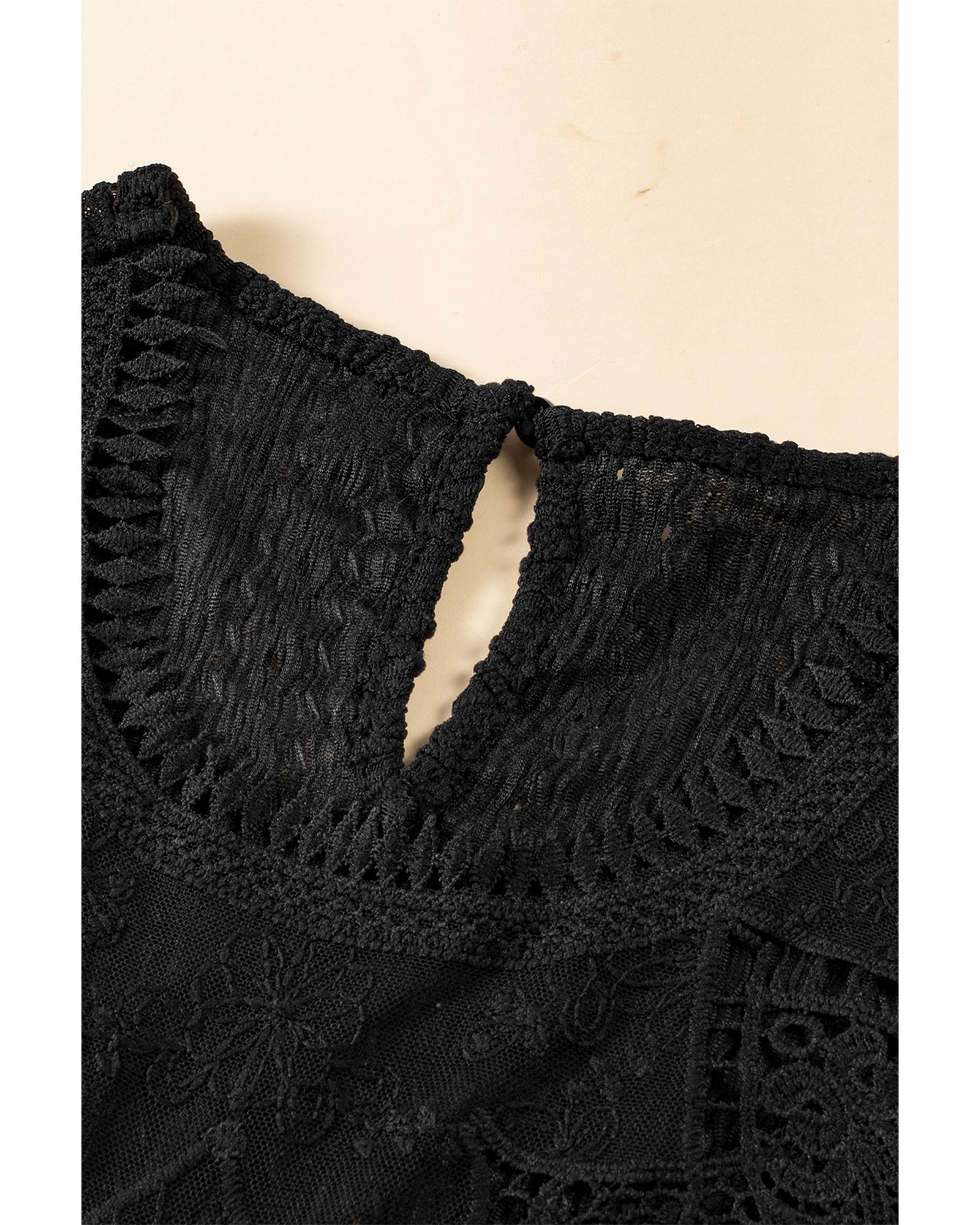 Black Guipure Lace Crochet Keyhole Back Tank Top - M