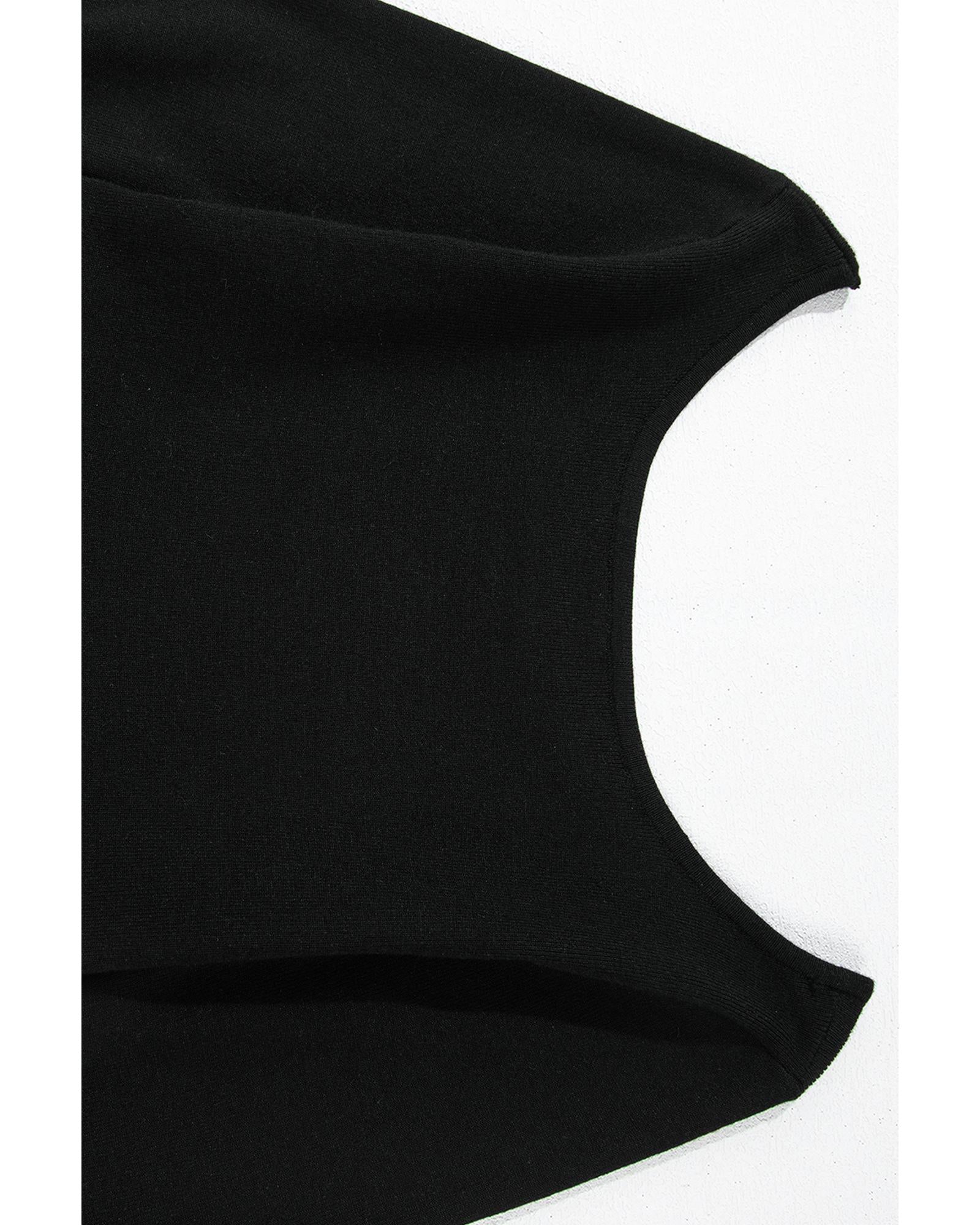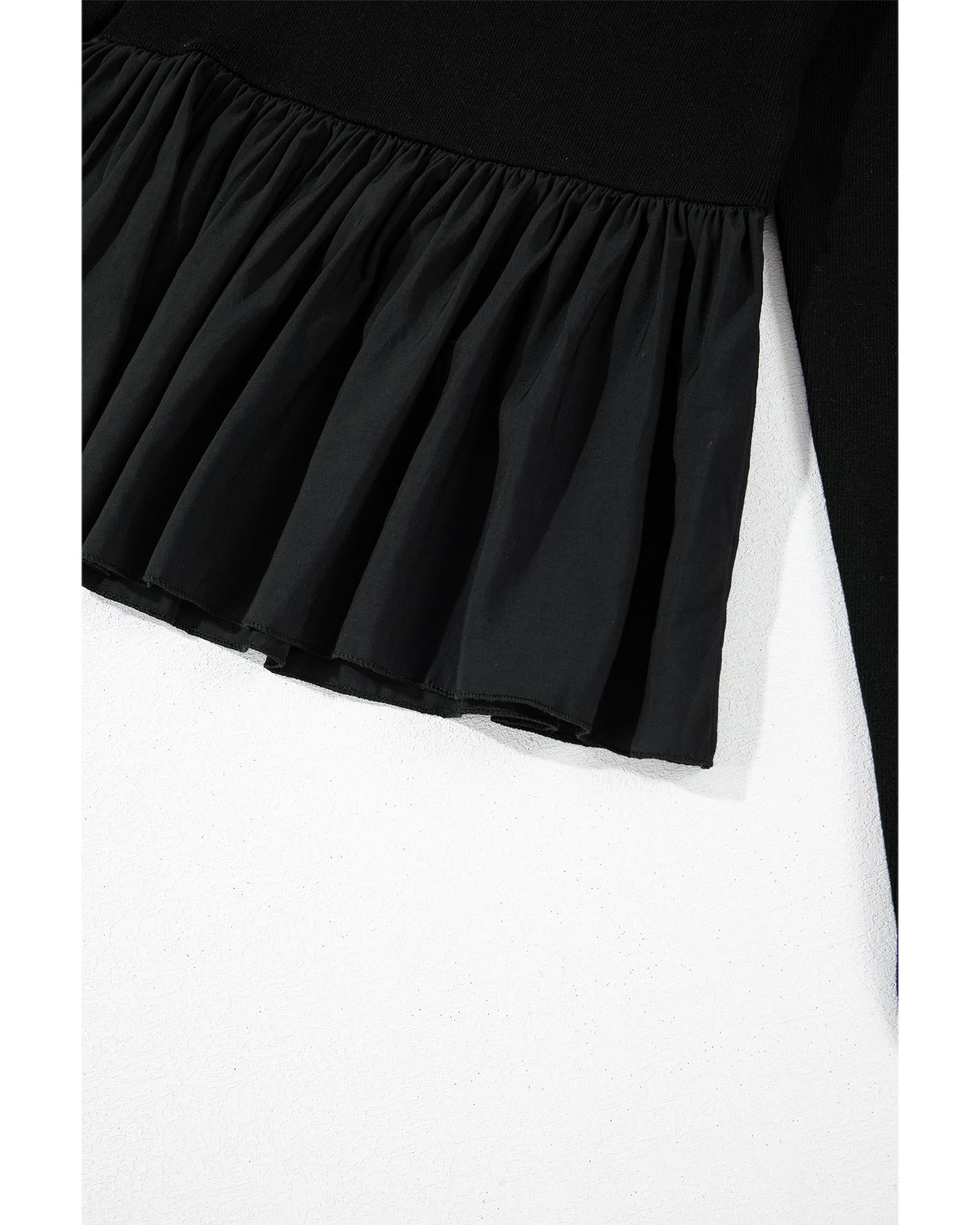 Black Ribbed Knit Long Sleeve Scoop Neck Peplum Patchwork Top - L