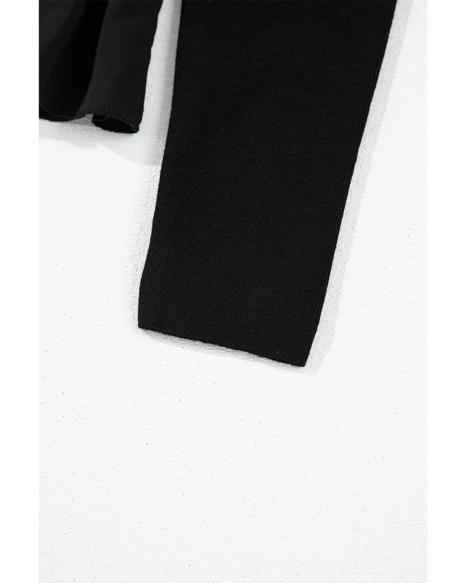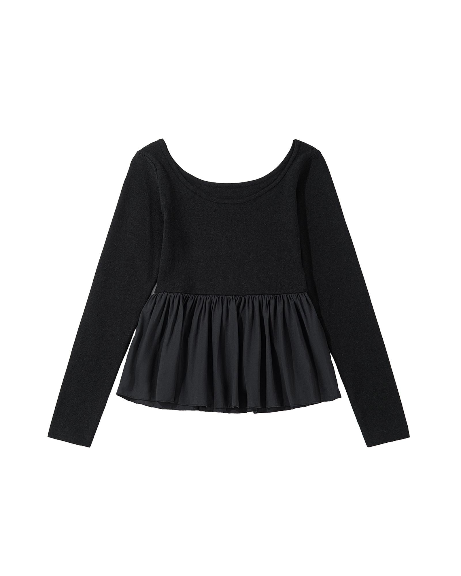 Black Ribbed Knit Long Sleeve Scoop Neck Peplum Patchwork Top - M