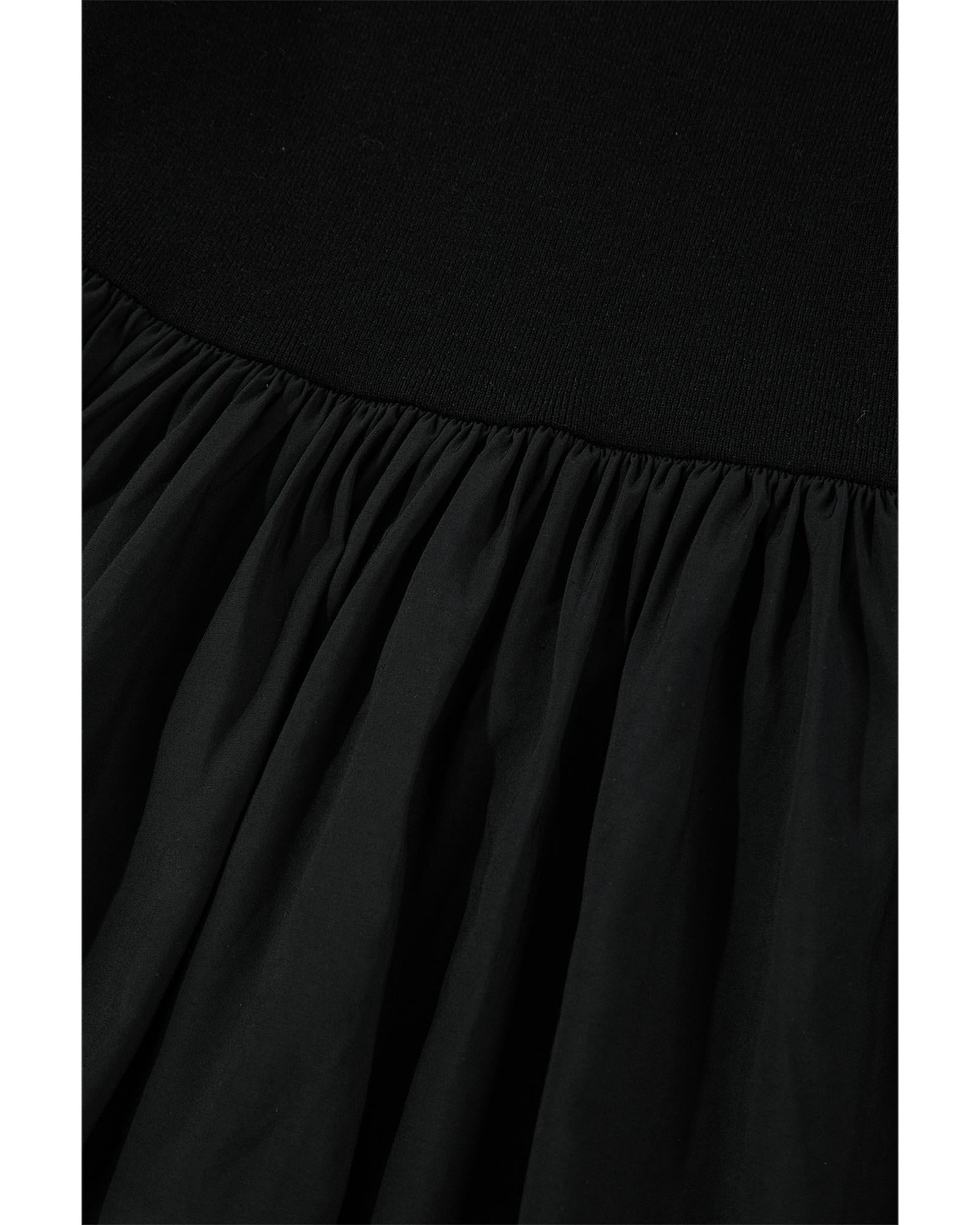 Black Ribbed Knit Long Sleeve Scoop Neck Peplum Patchwork Top - S