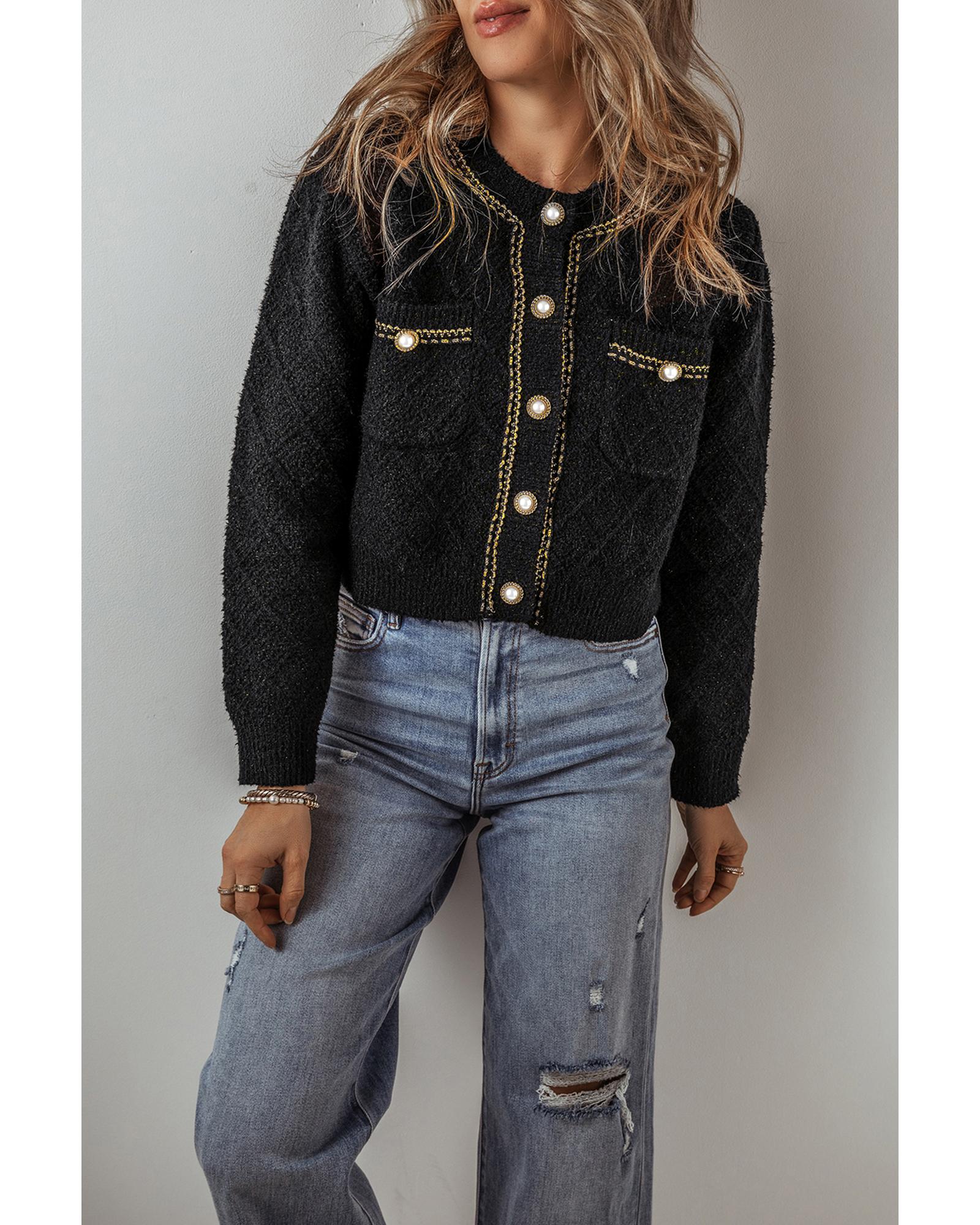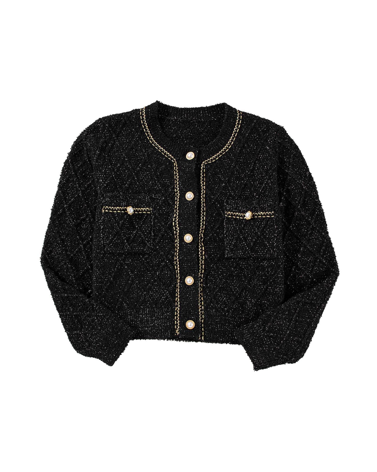 Black Shimmer Flap Pocket Button up Cardigan - XL