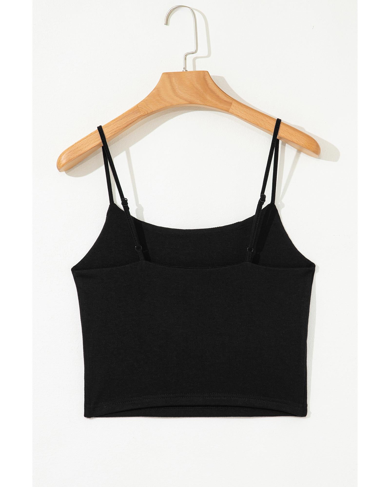 Black Spaghetti Strap Skinny Fit Cropped Tank Top - L