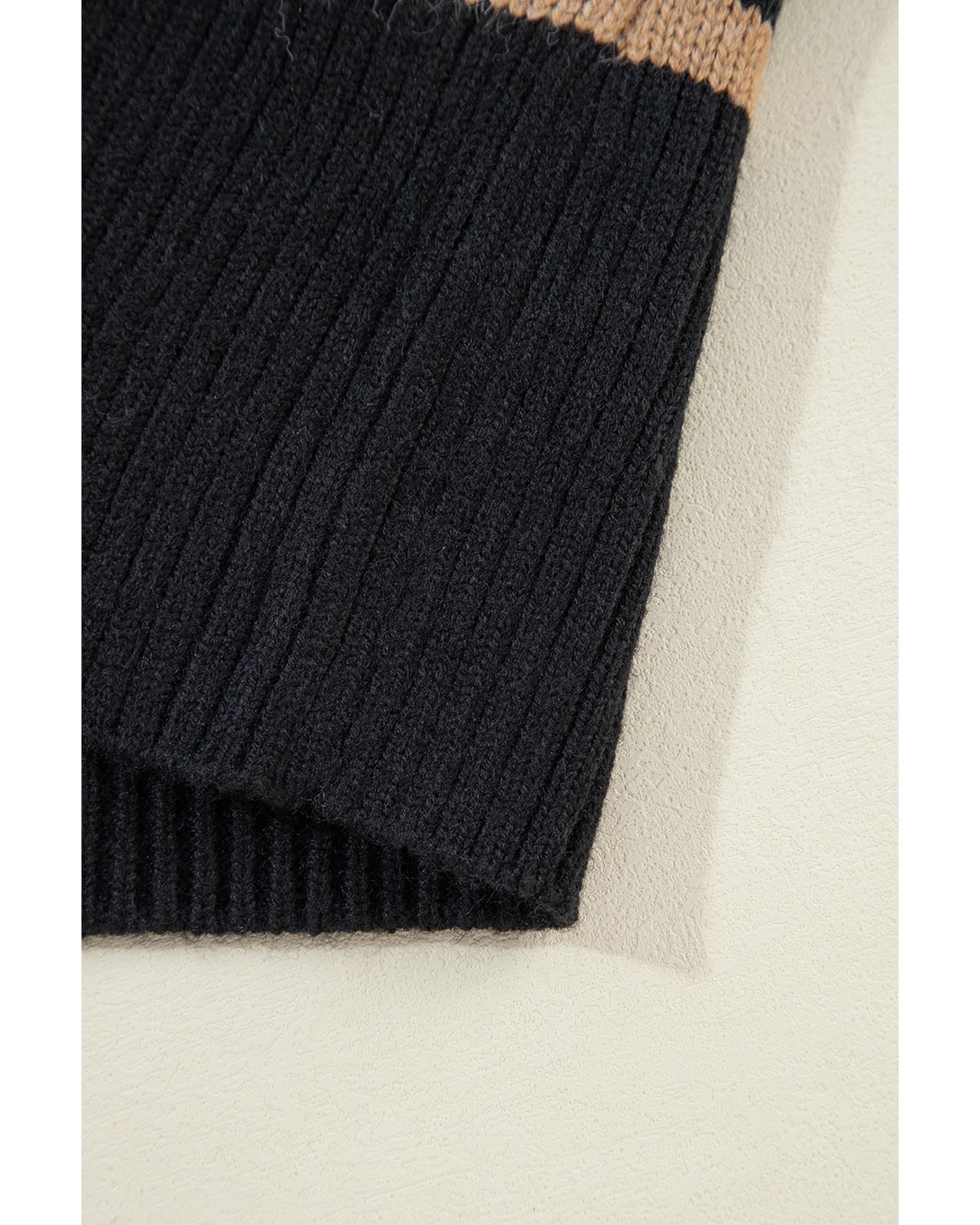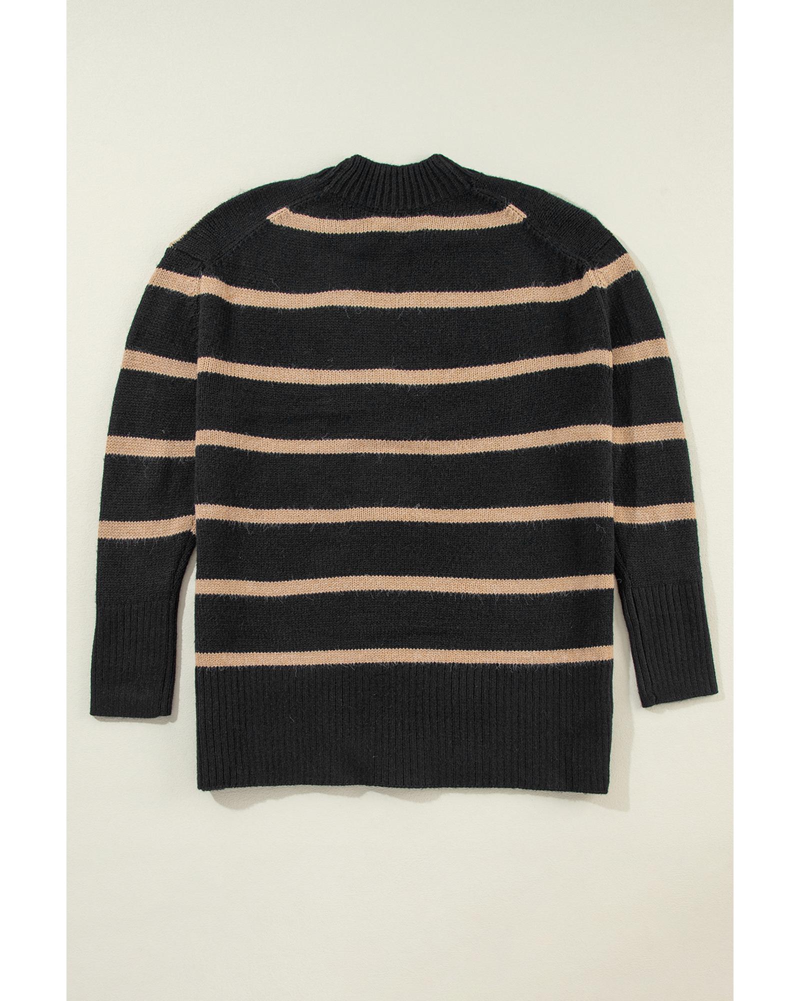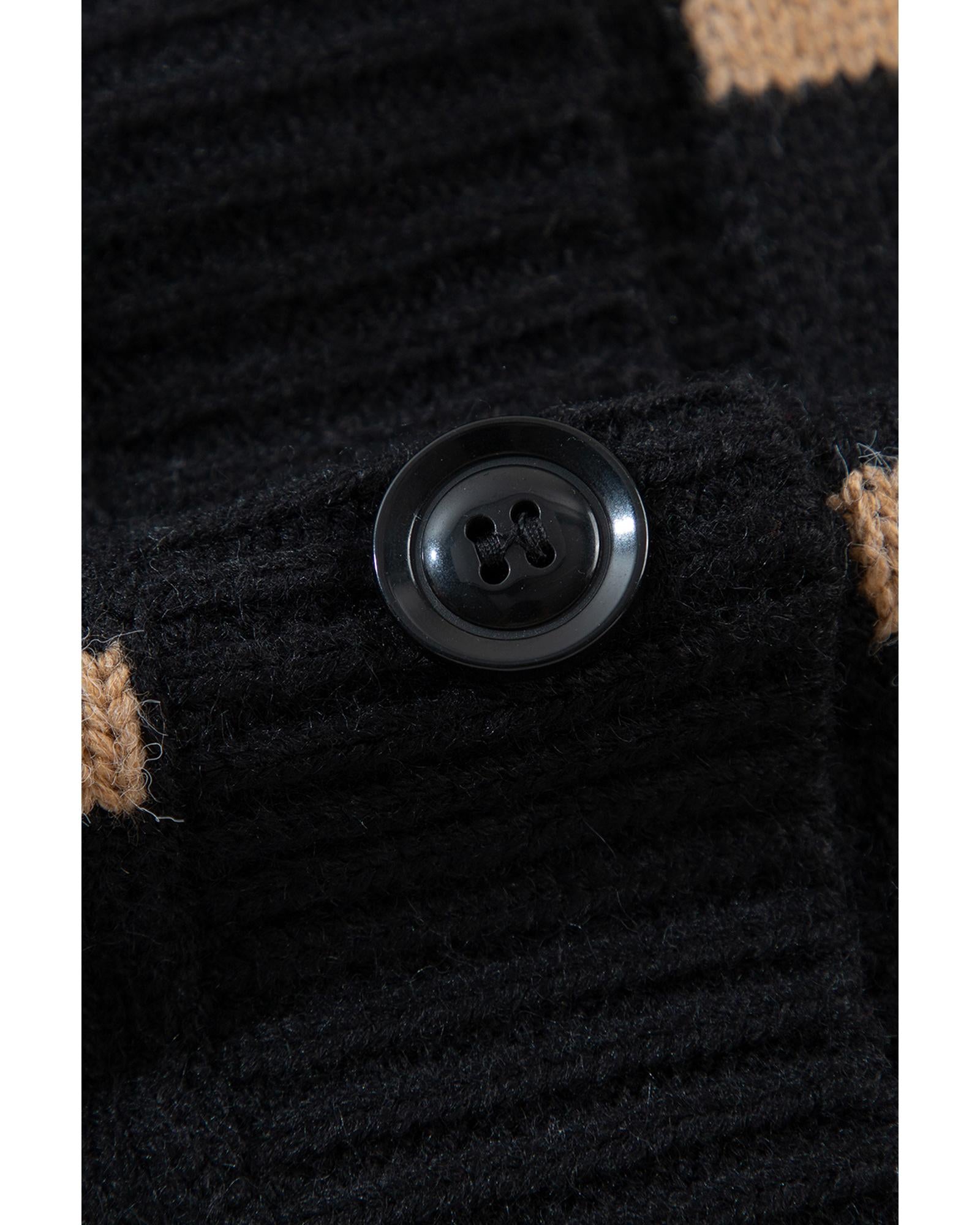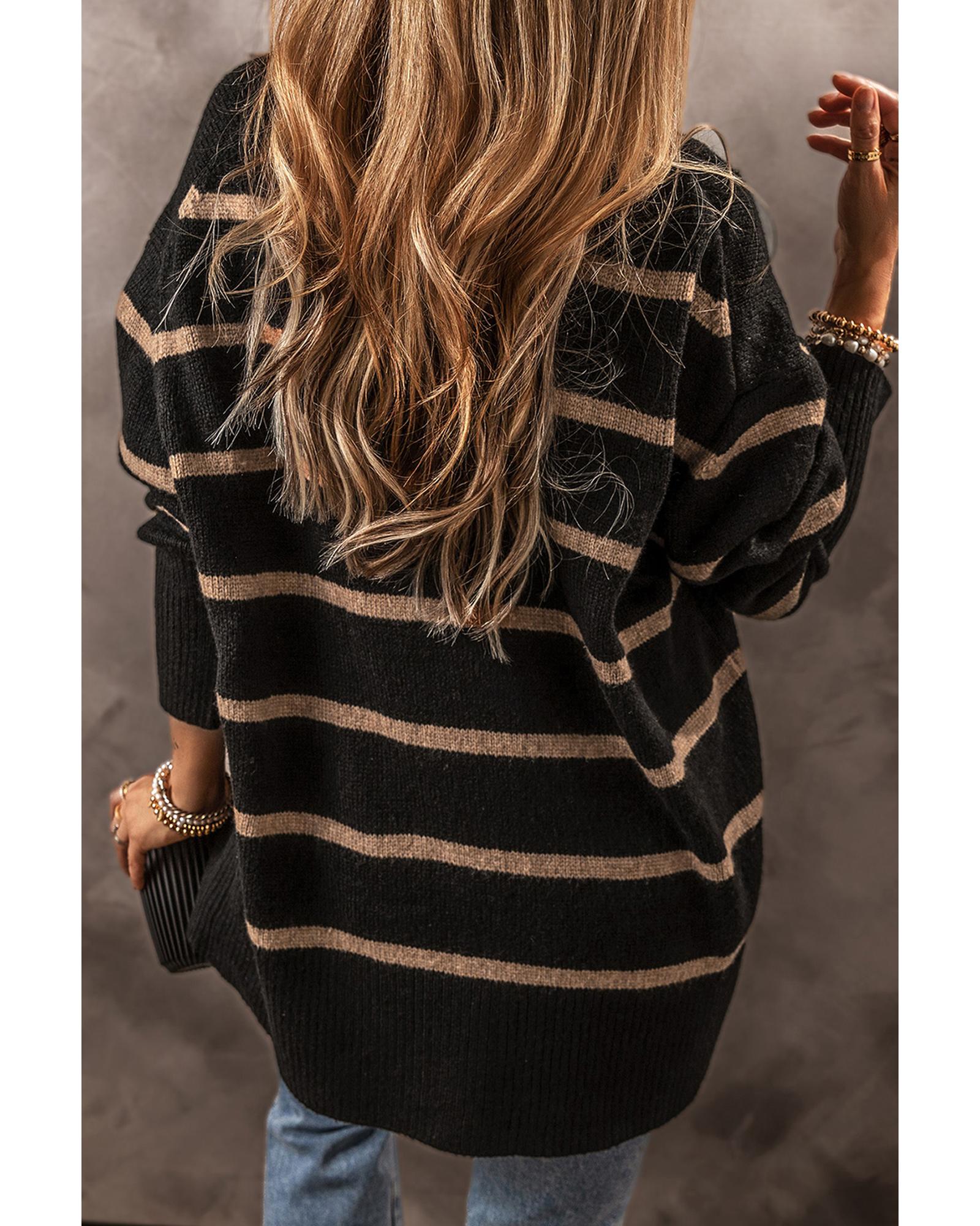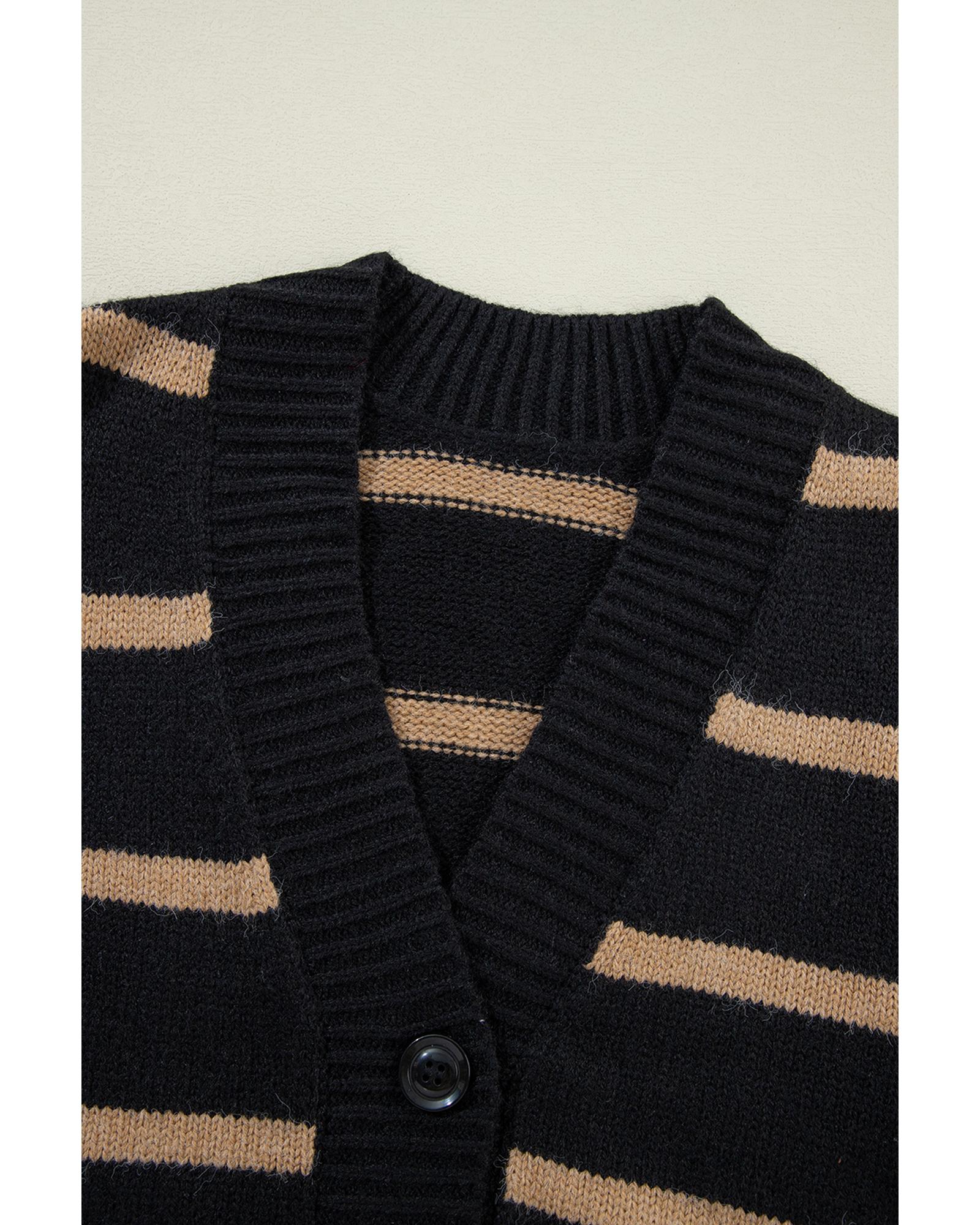 Black Stripe Buttoned V Neck Drop Shoulder Loose Cardigan - 2XL