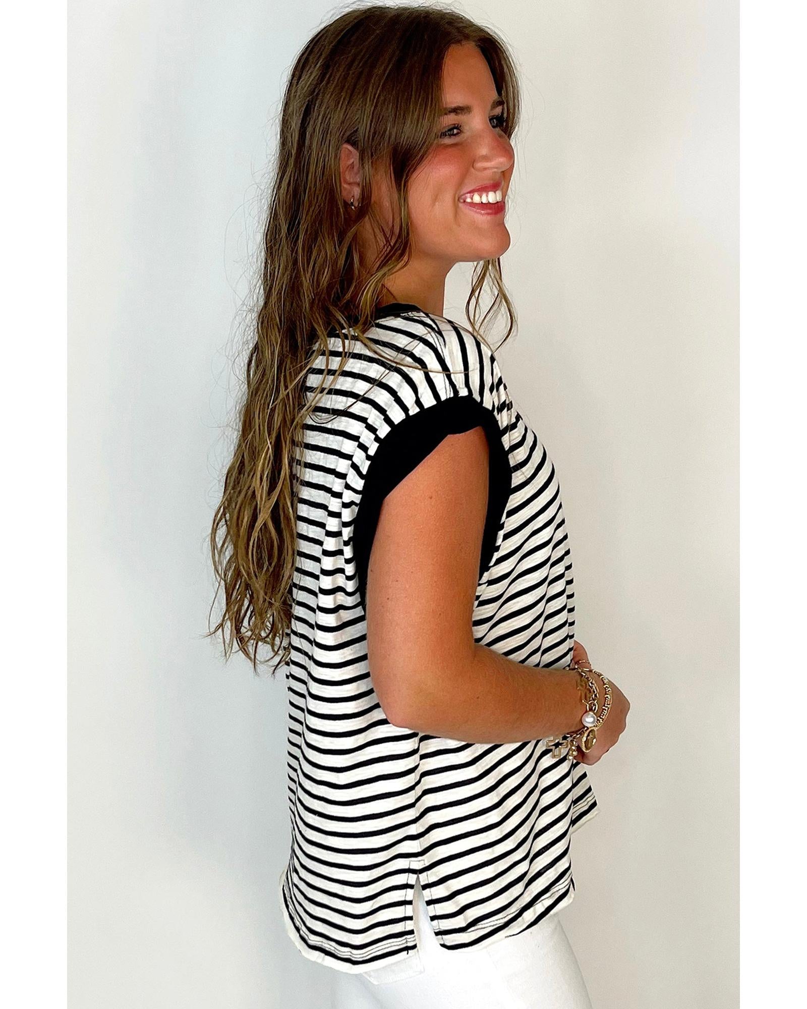 Black Stripe Chest Pocket Patch Round Neck Tank Top - XL