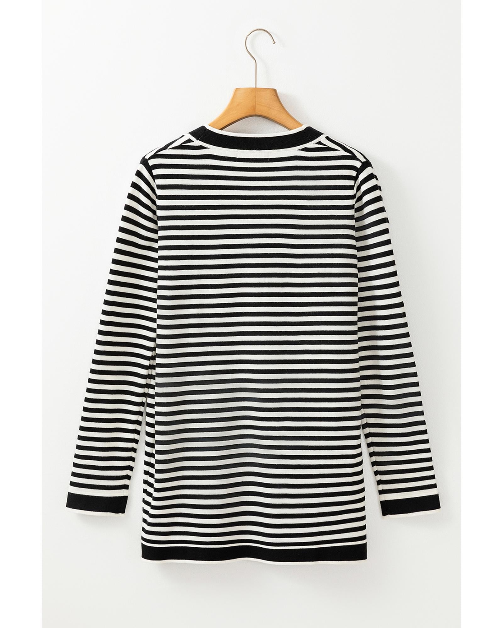 Black Stripe Long Sleeve Button up Tunic Cardigan - 2XL