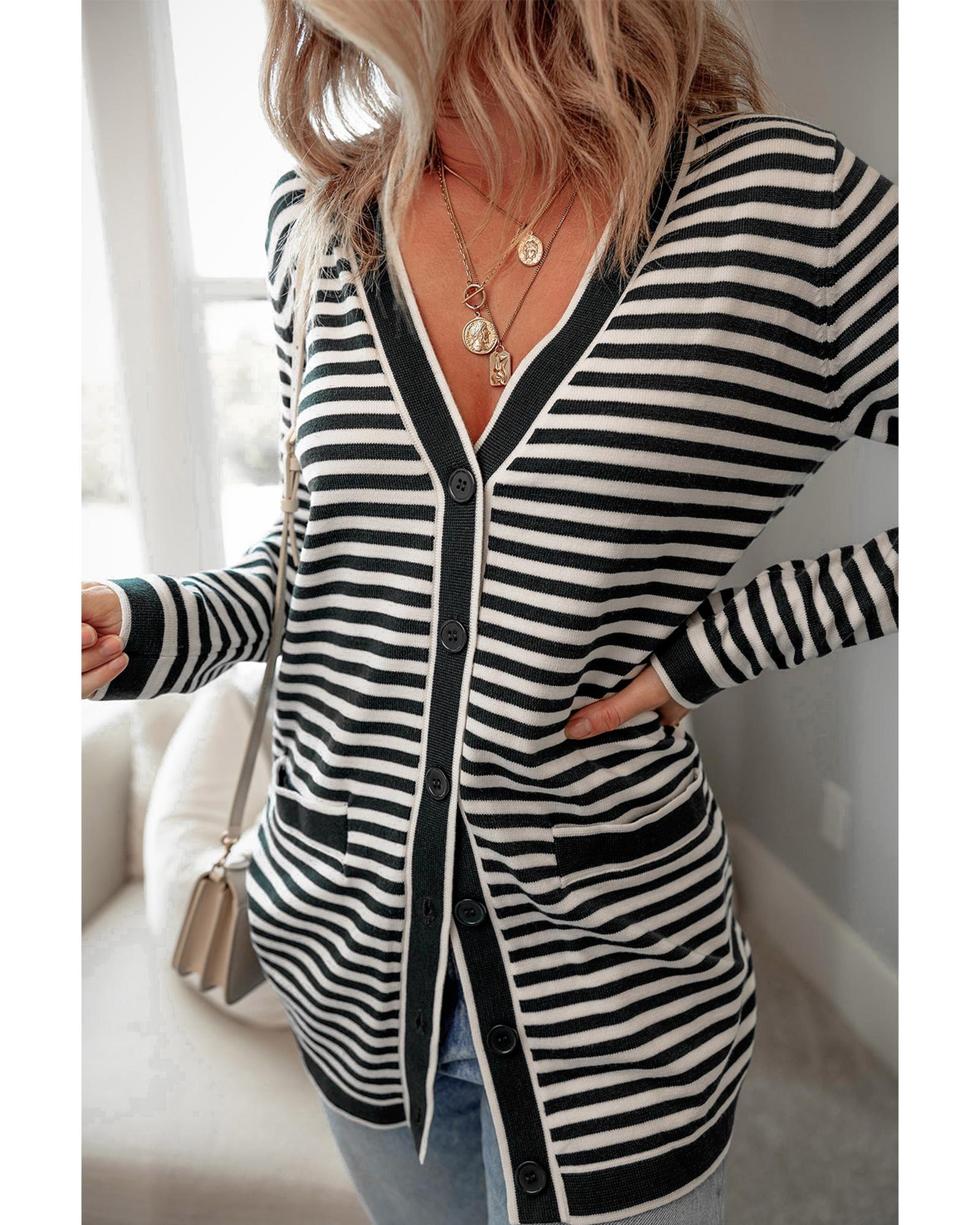 Black Stripe Long Sleeve Button up Tunic Cardigan - S