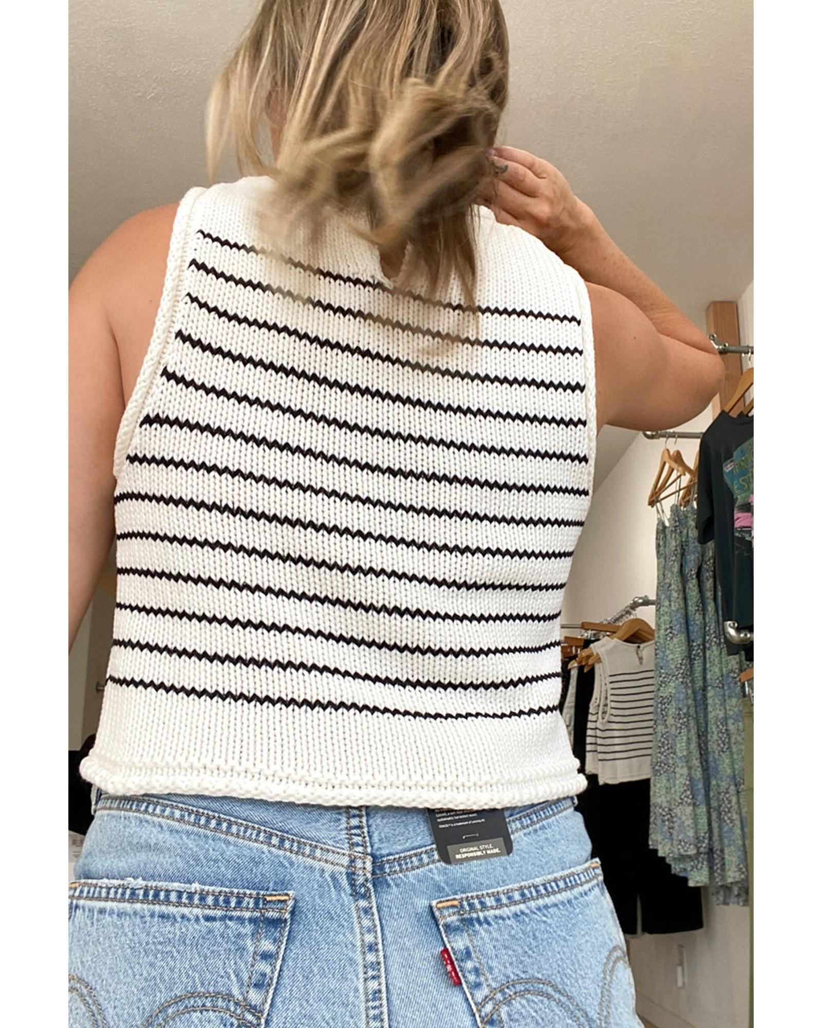 Black Stripe Raw Edge Crew Neck Knitted Vest - M