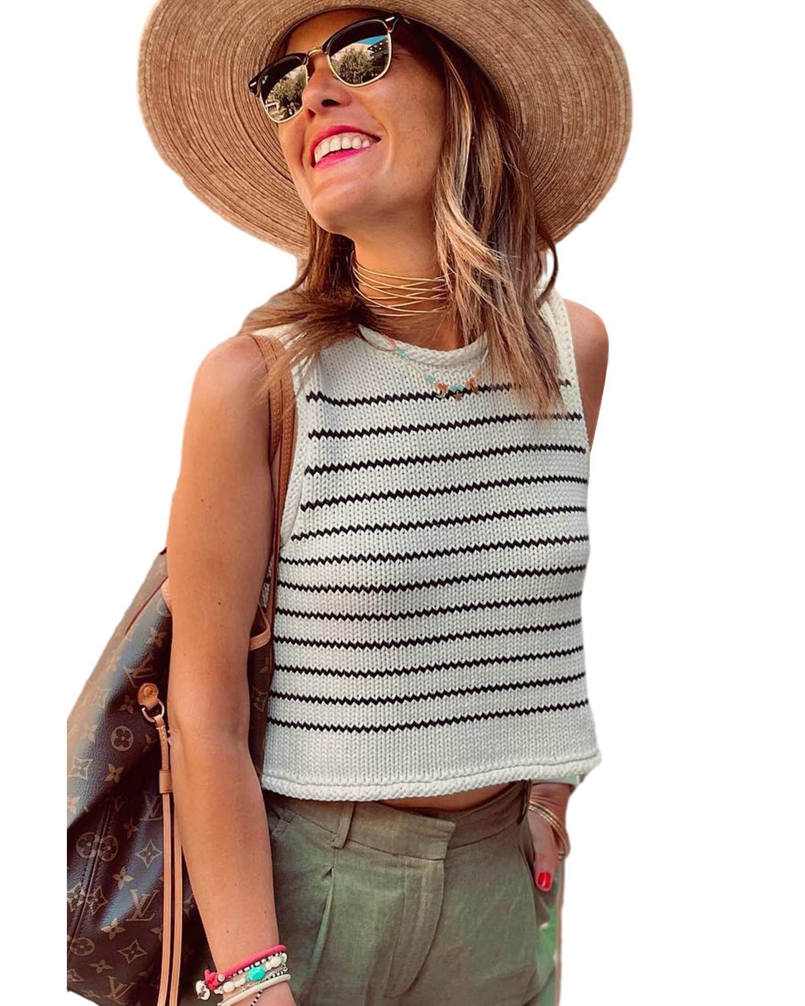 Black Stripe Raw Edge Crew Neck Knitted Vest - S