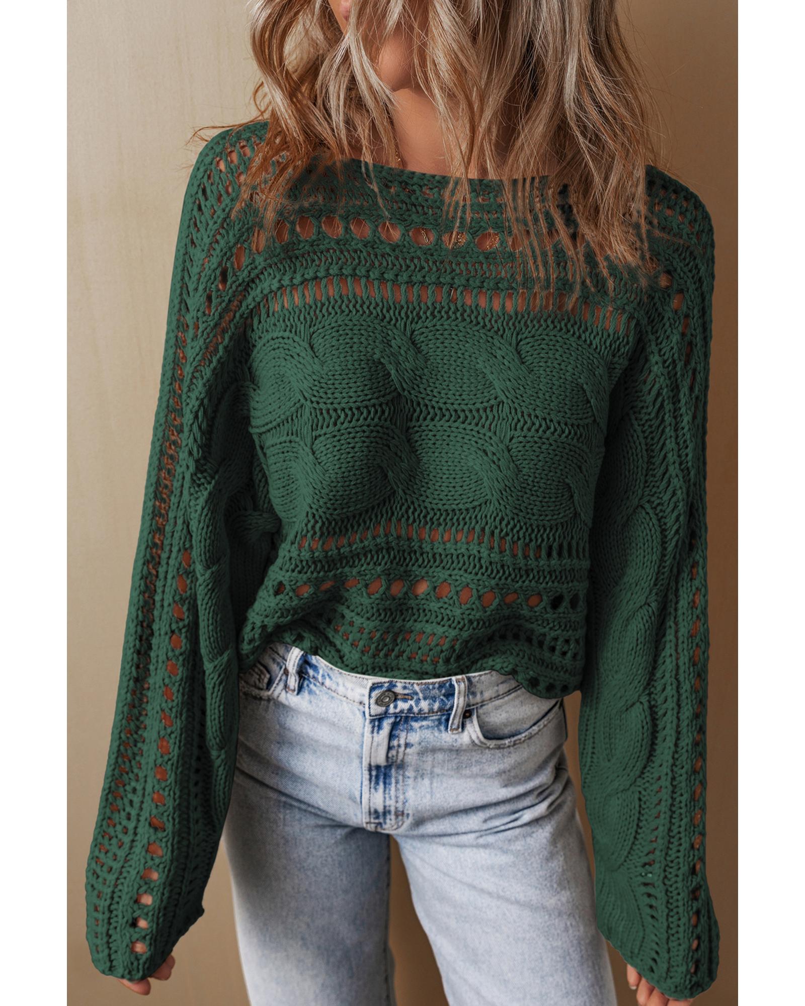 Blackish Green Hollow-out Cable Knit Cropped Sweater - XL