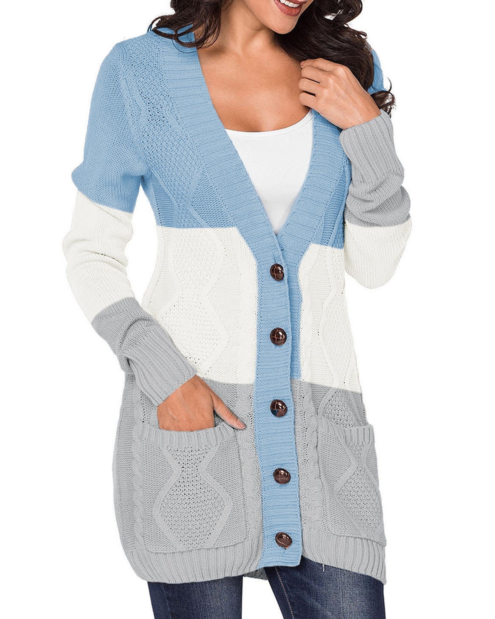 Blue Front Pocket and Buttons Closure Cardigan - 2 US