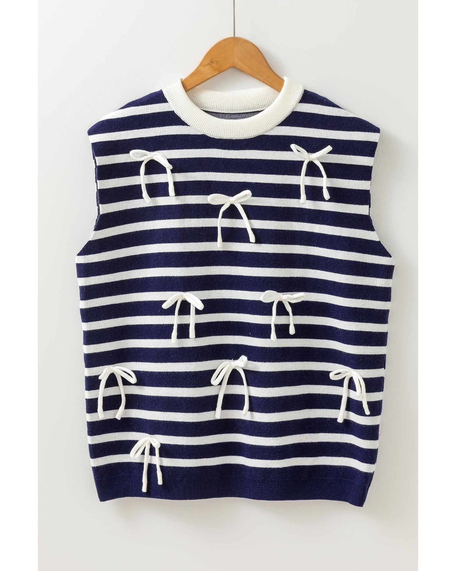Blue Stripe Knitted Bow Decor Sweater Vest - M