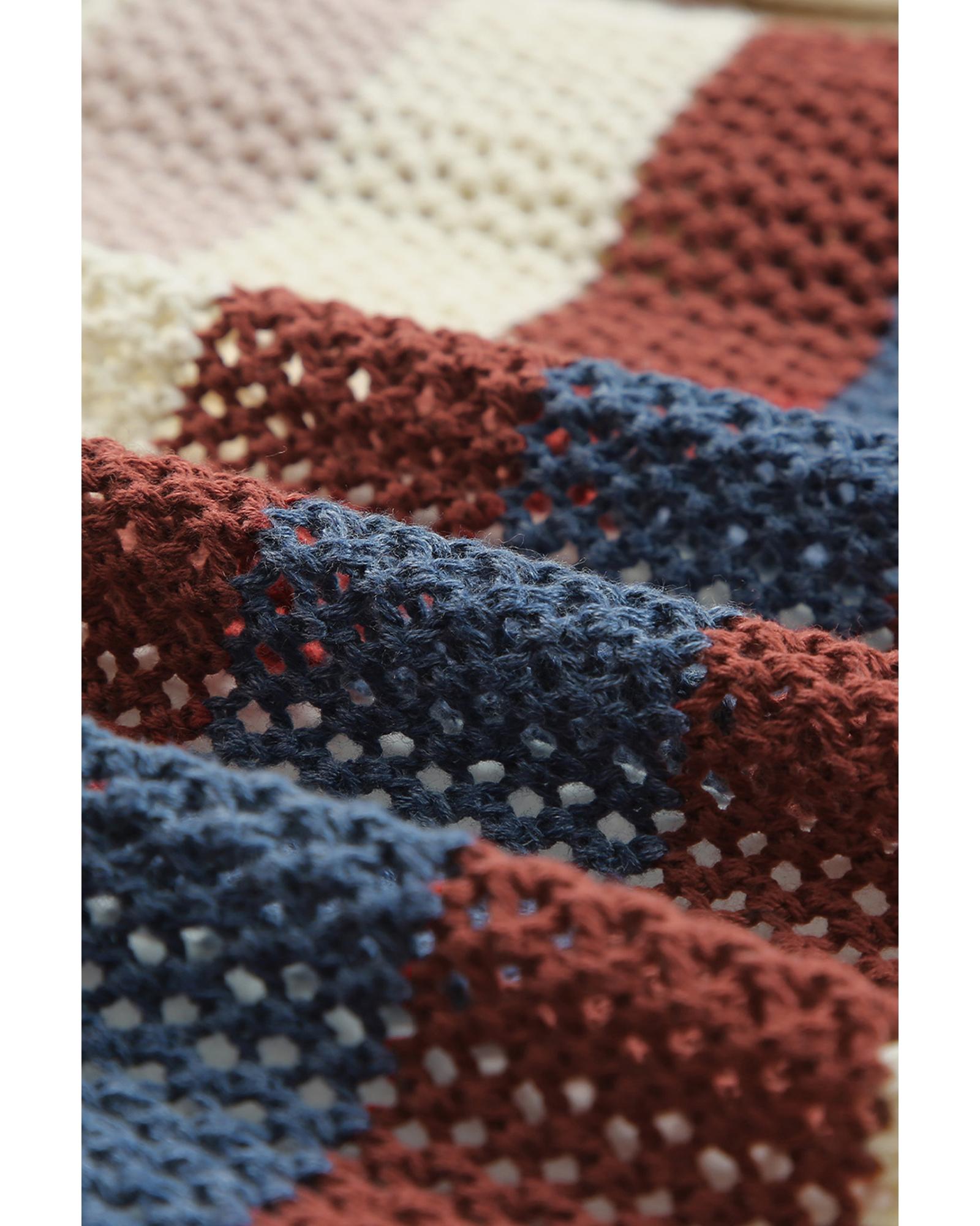 Blue Striped Color Block Hollowed Knit Cardigan - S