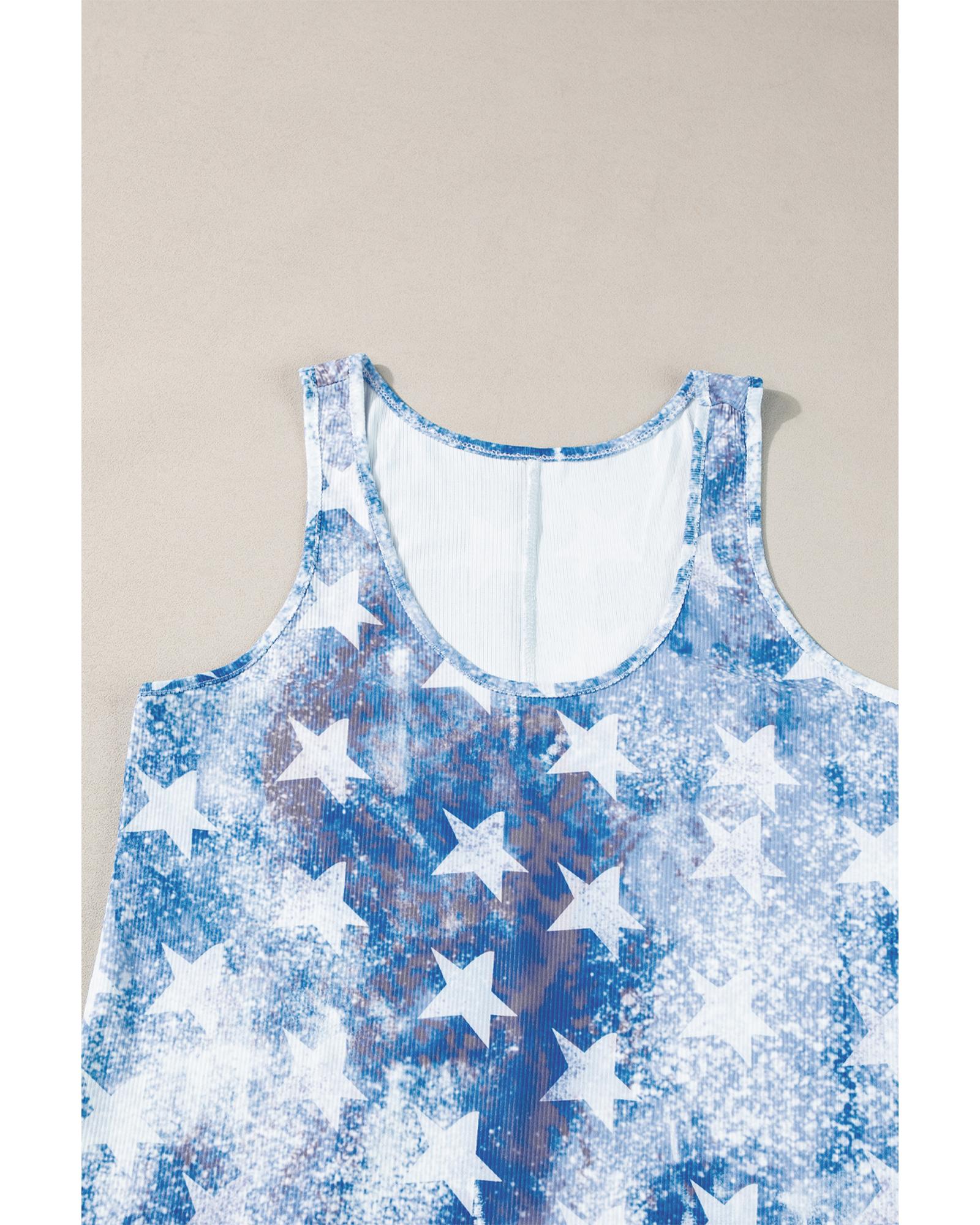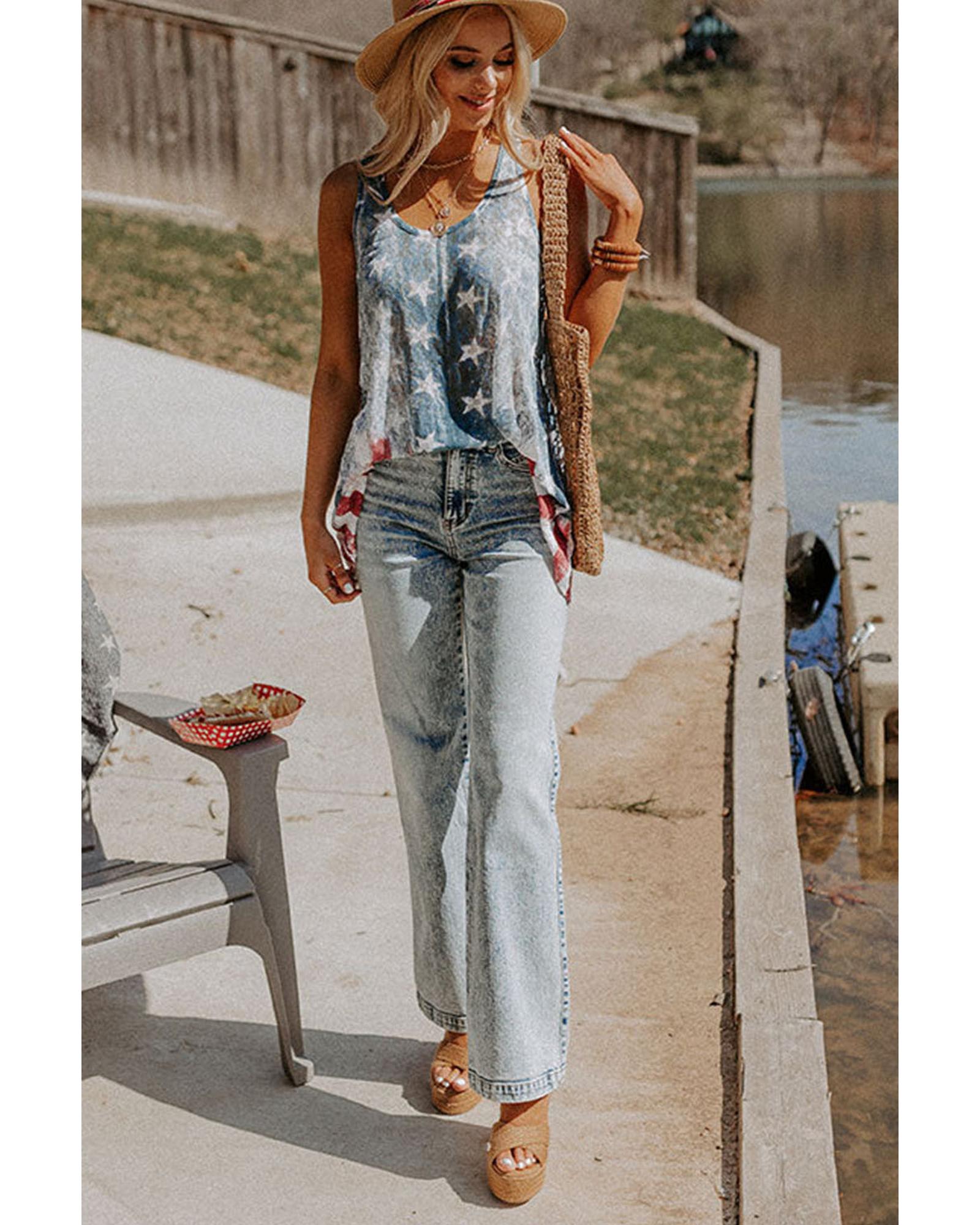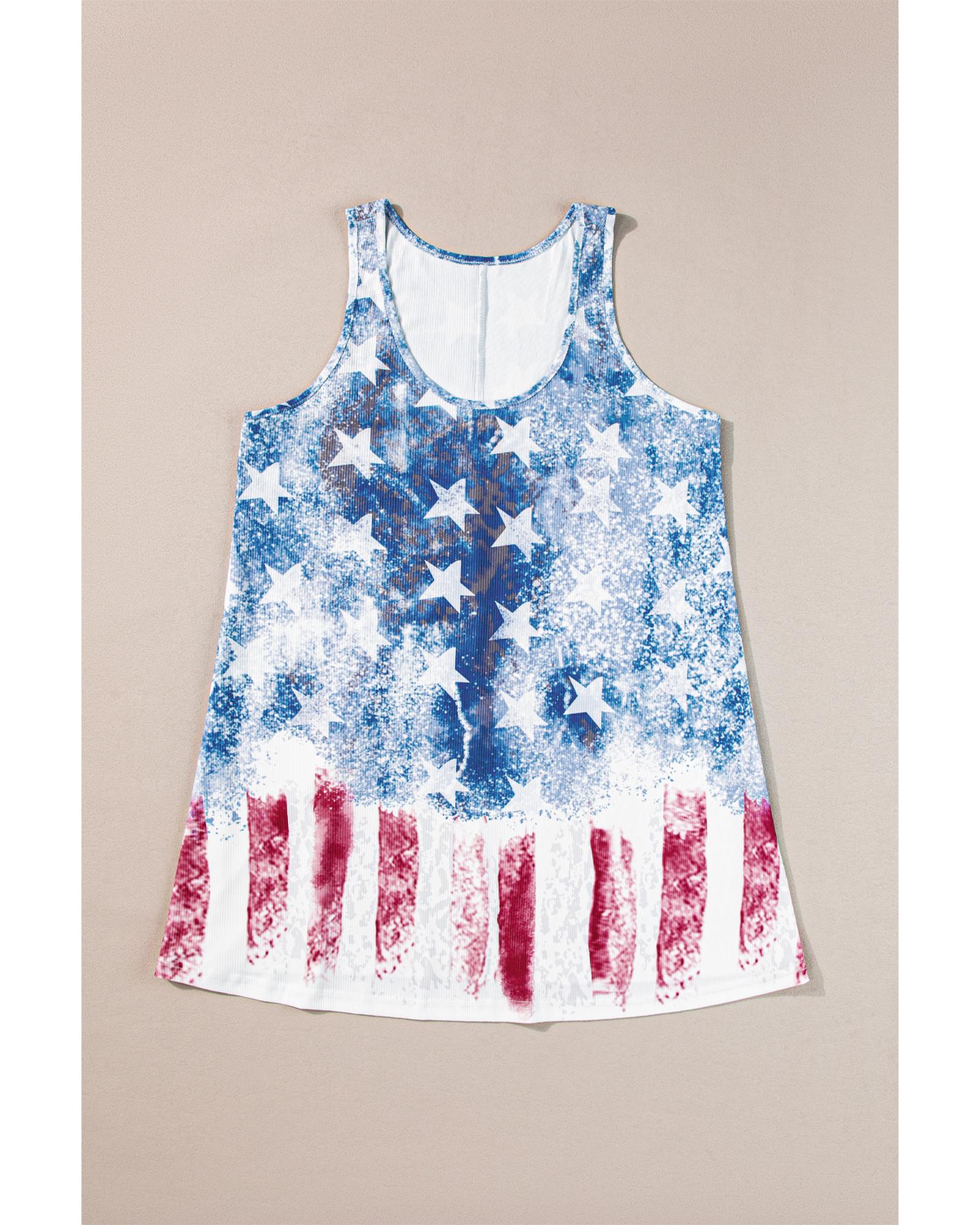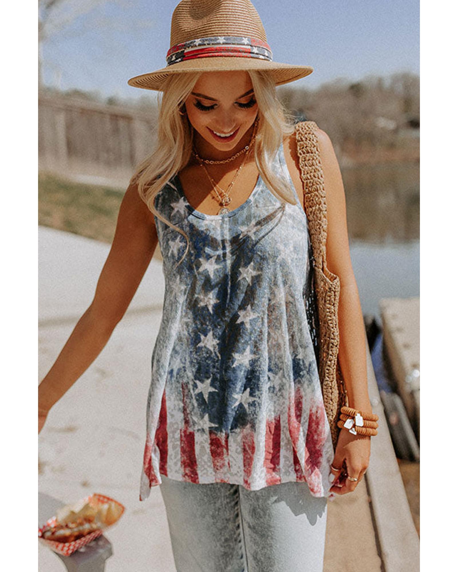 Blue Vintage Washed Flag Print Shift Tank Top - M
