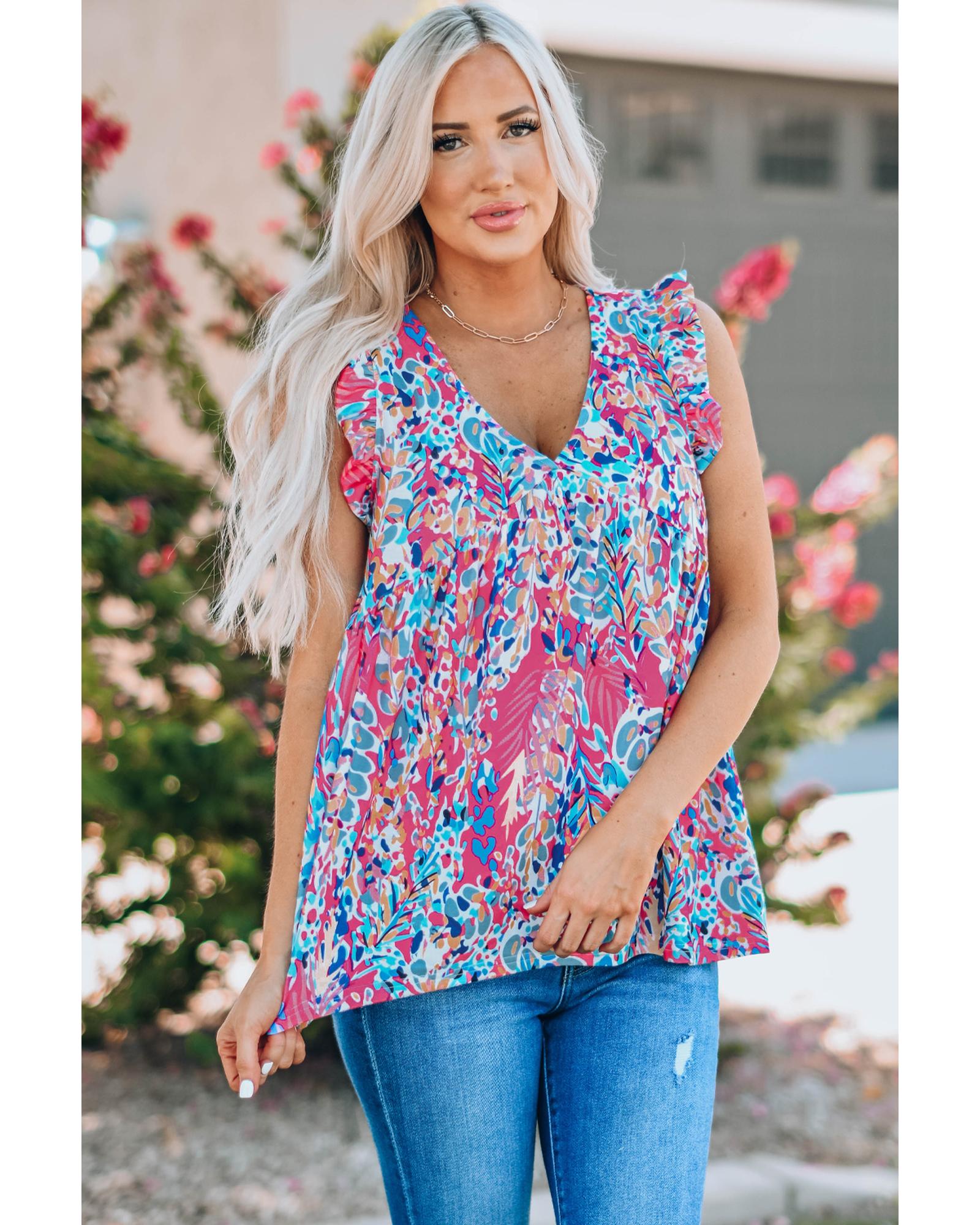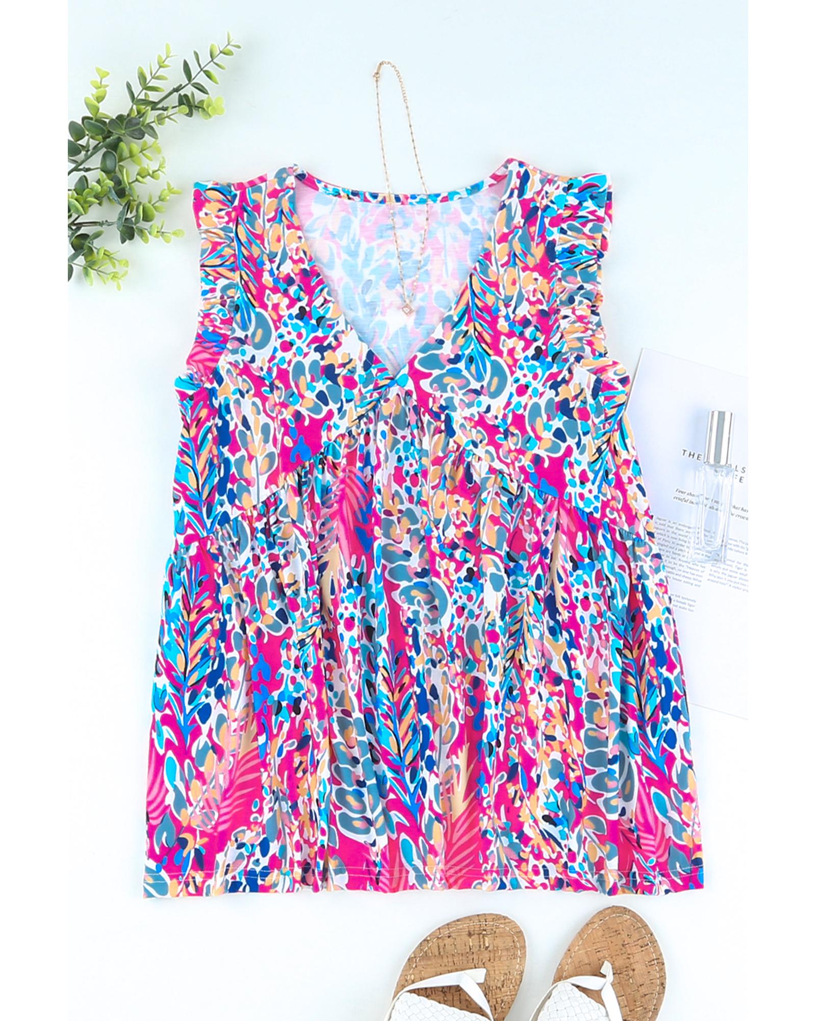 Boho Pattern Print Flounce V Neck Tank Top - S