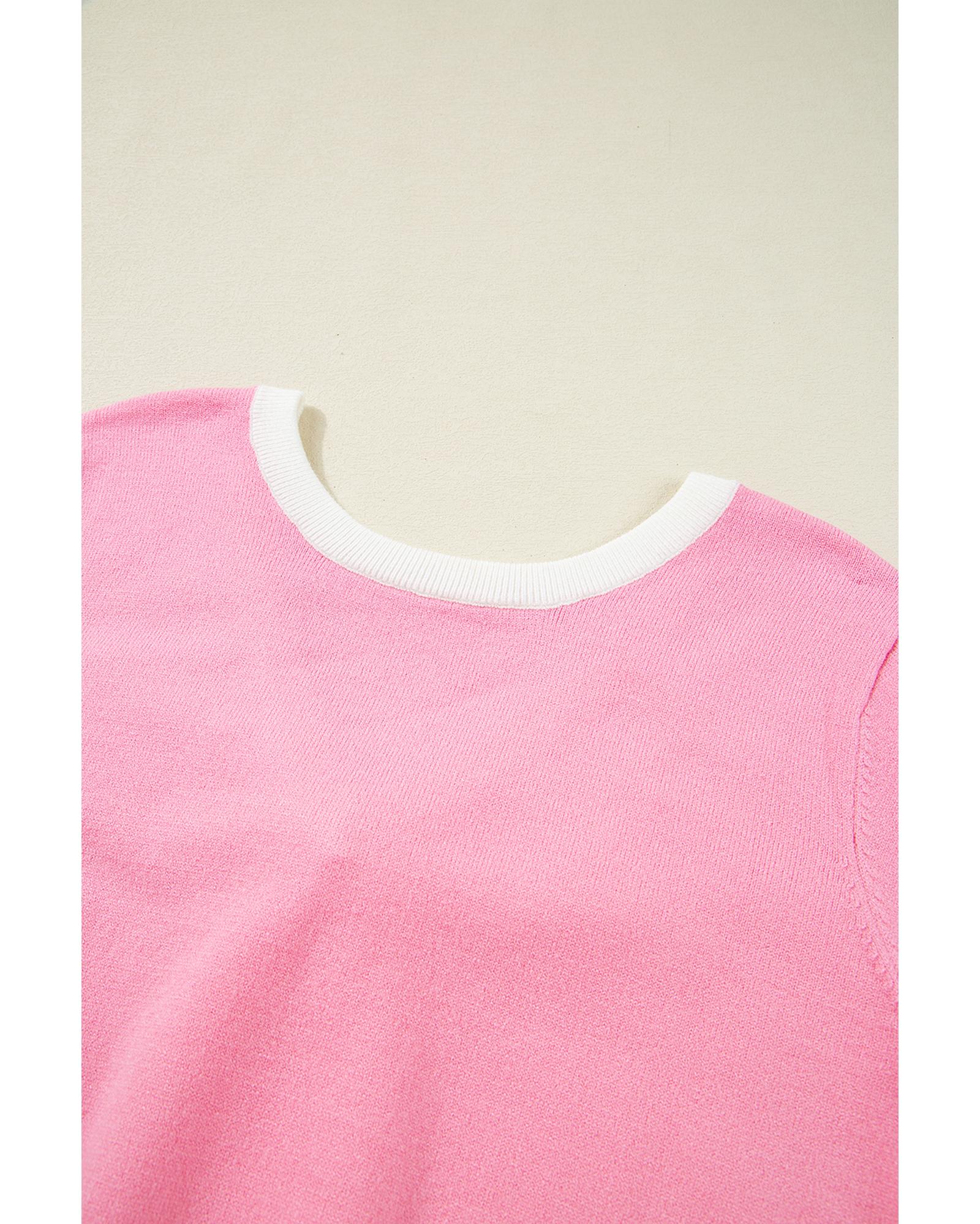 Bonbon Colorblock Bow V-Shape Cut Back Short Sleeve Sweater - XL