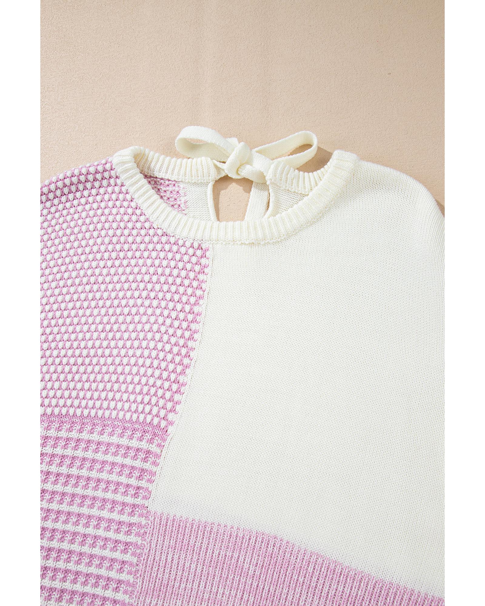 Bonbon Neutral Colorblock Tie Back Sweater - M