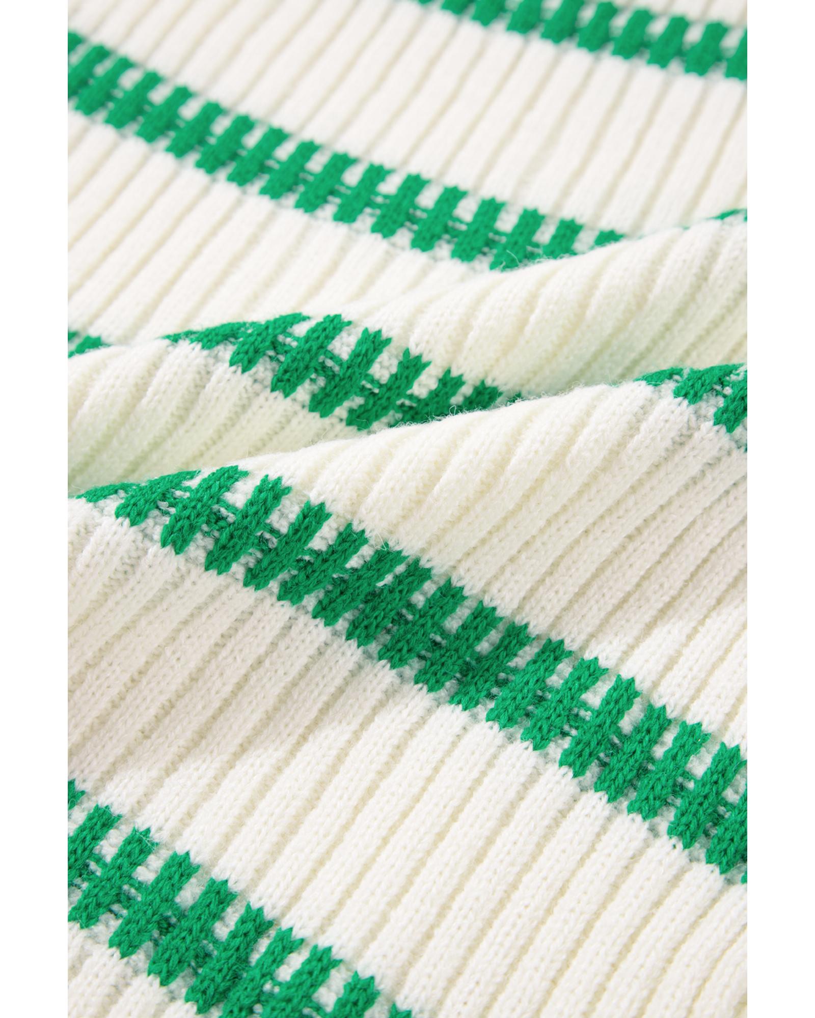 Bright Green Striped Round Neck Casual Sweater Vest - S