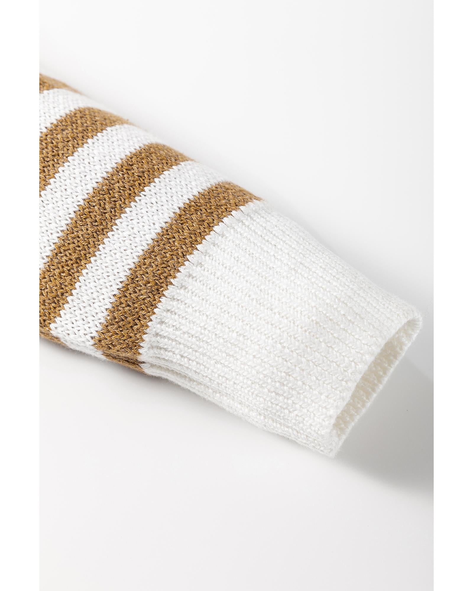 Brown Checkered Striped Patched Buttoned V Neck Cardigan - L