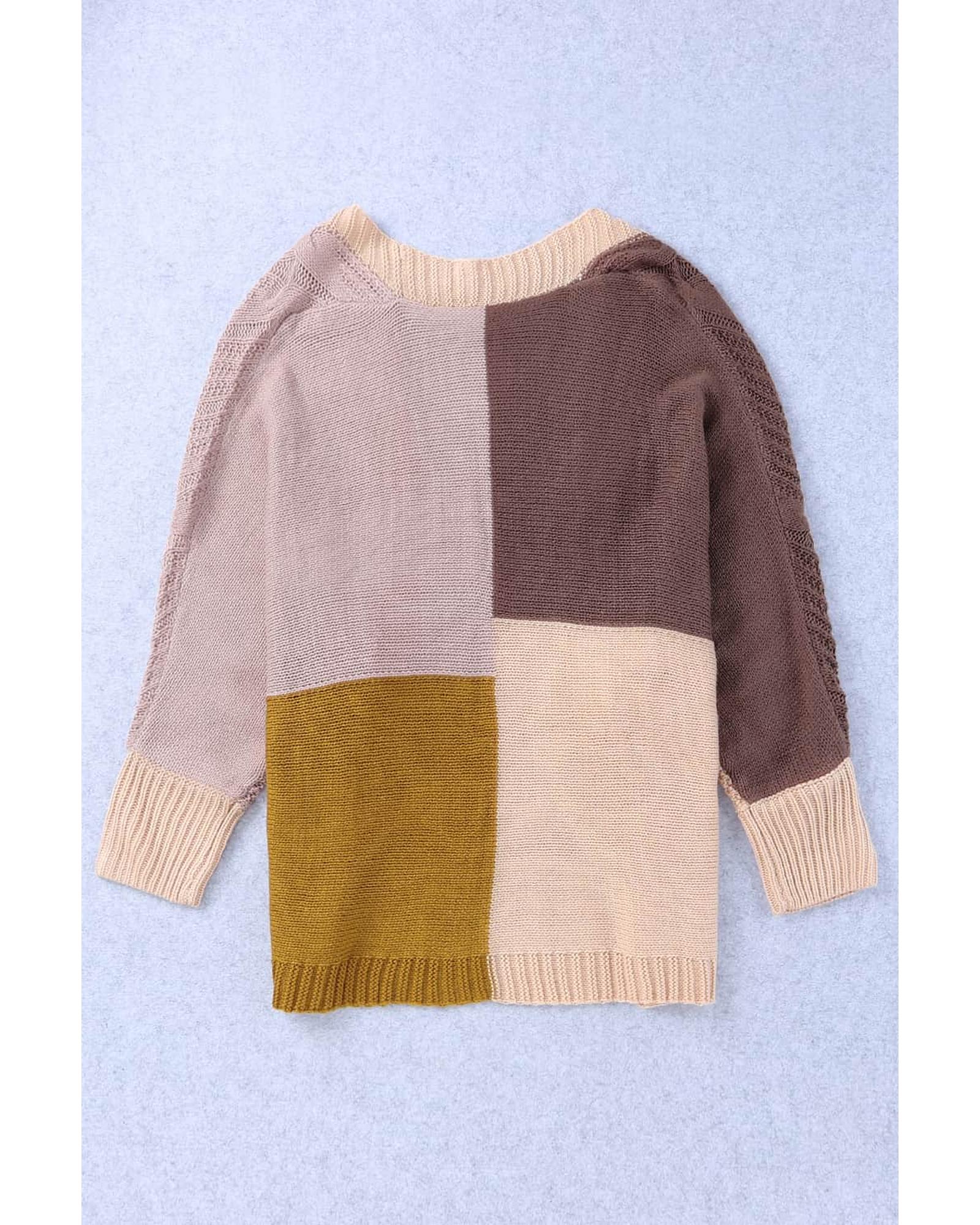 Brown Color Block Loose Open Front Knitted Cardigan - S
