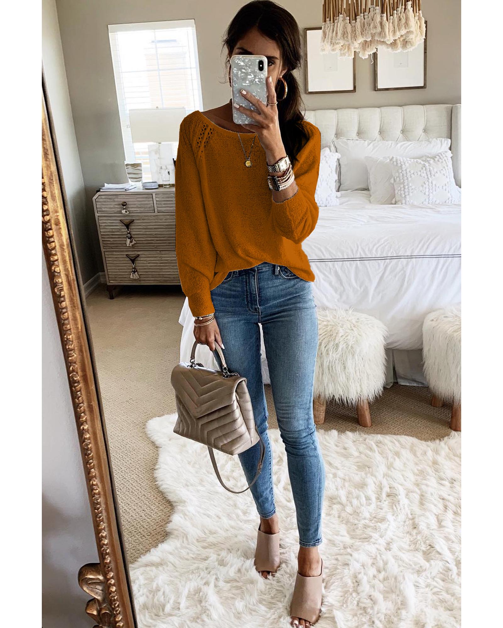 Brown Long Sleeve Cutout Shoulder Relaxed Sweater - XL