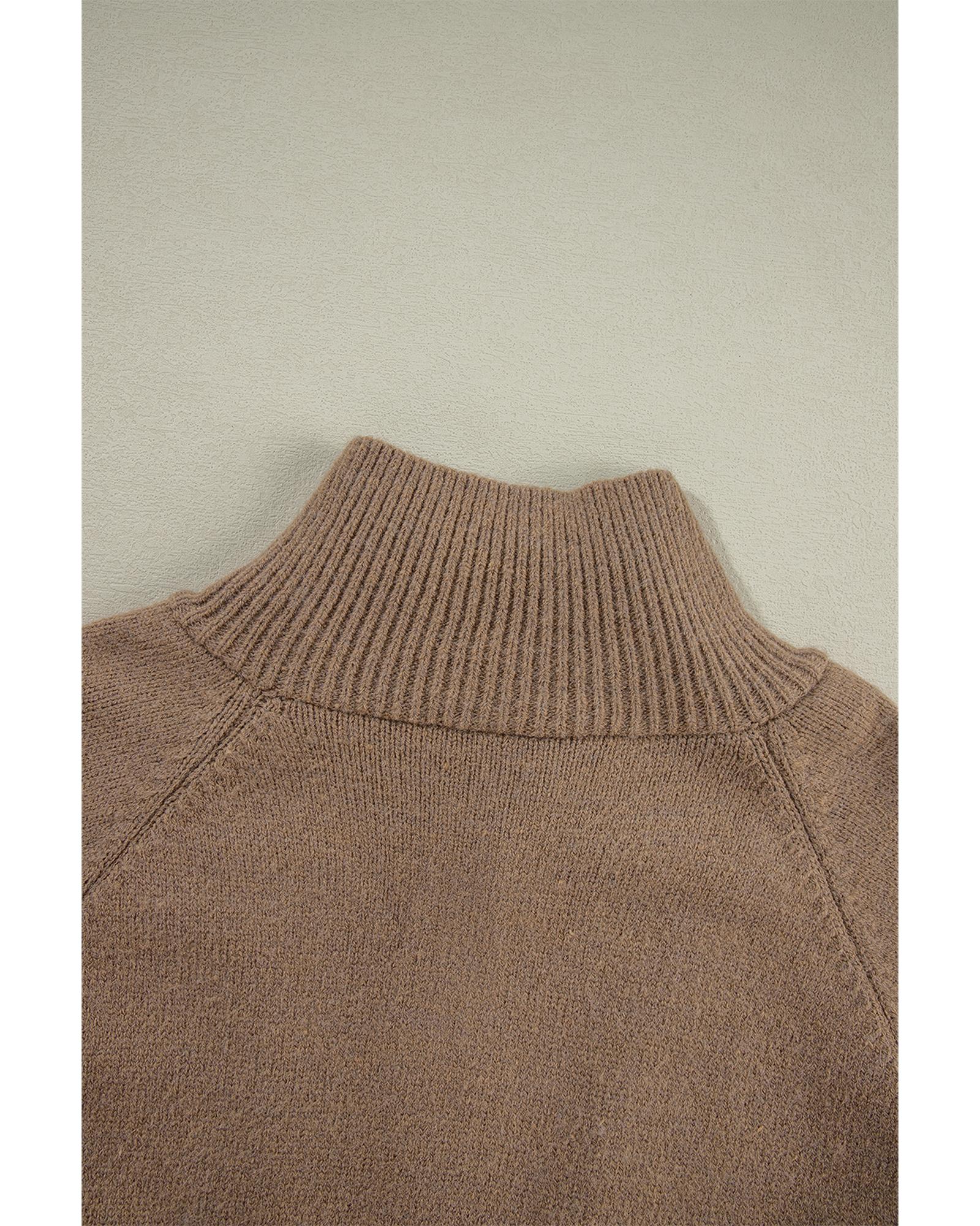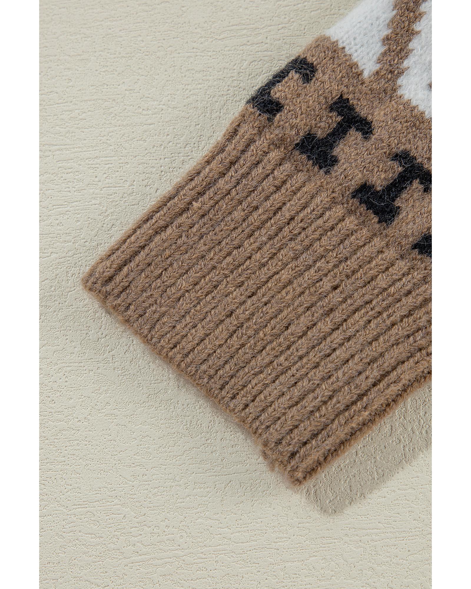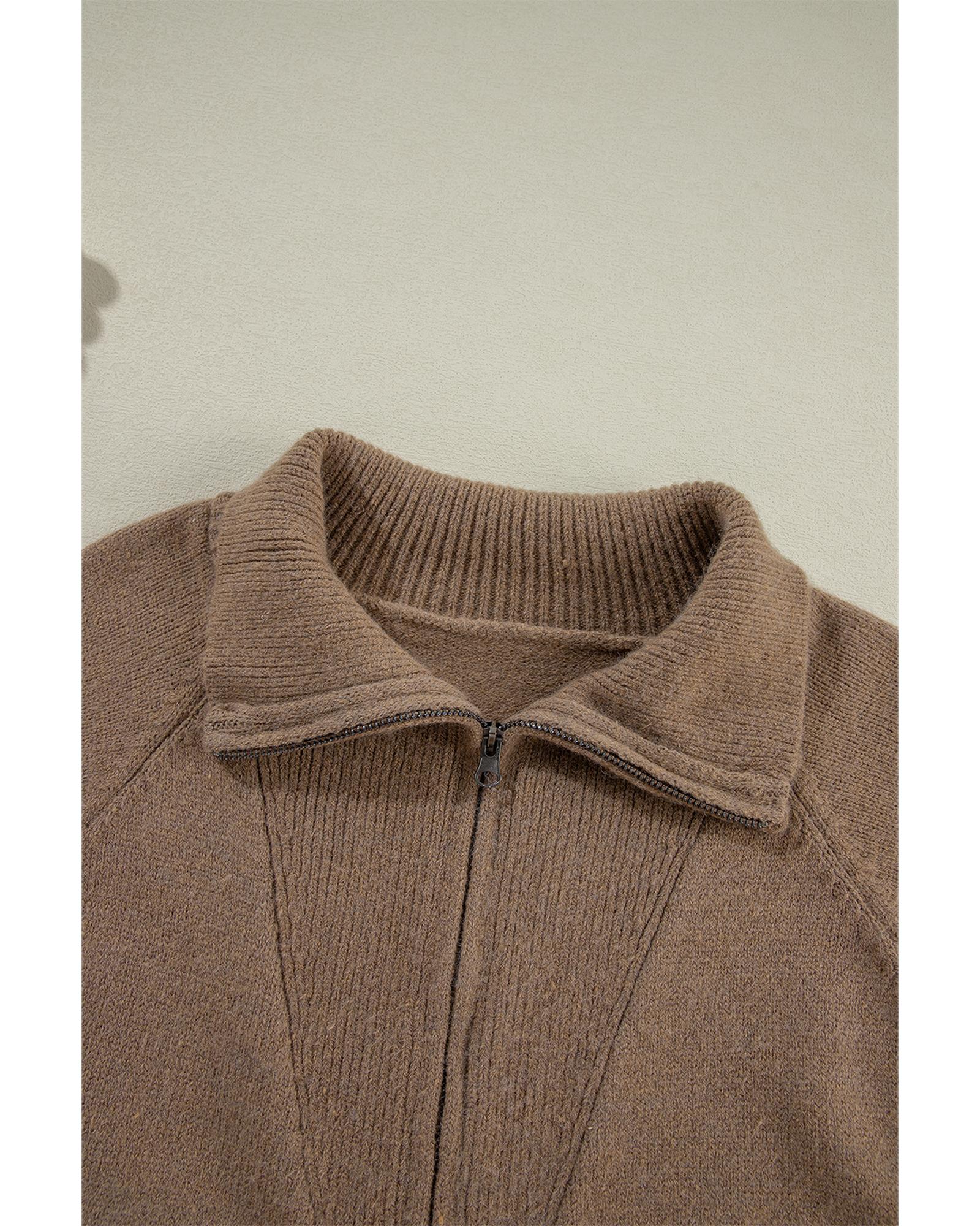 Brown Western Printed Ribbed Trim Collared Zip up Cardigan - S