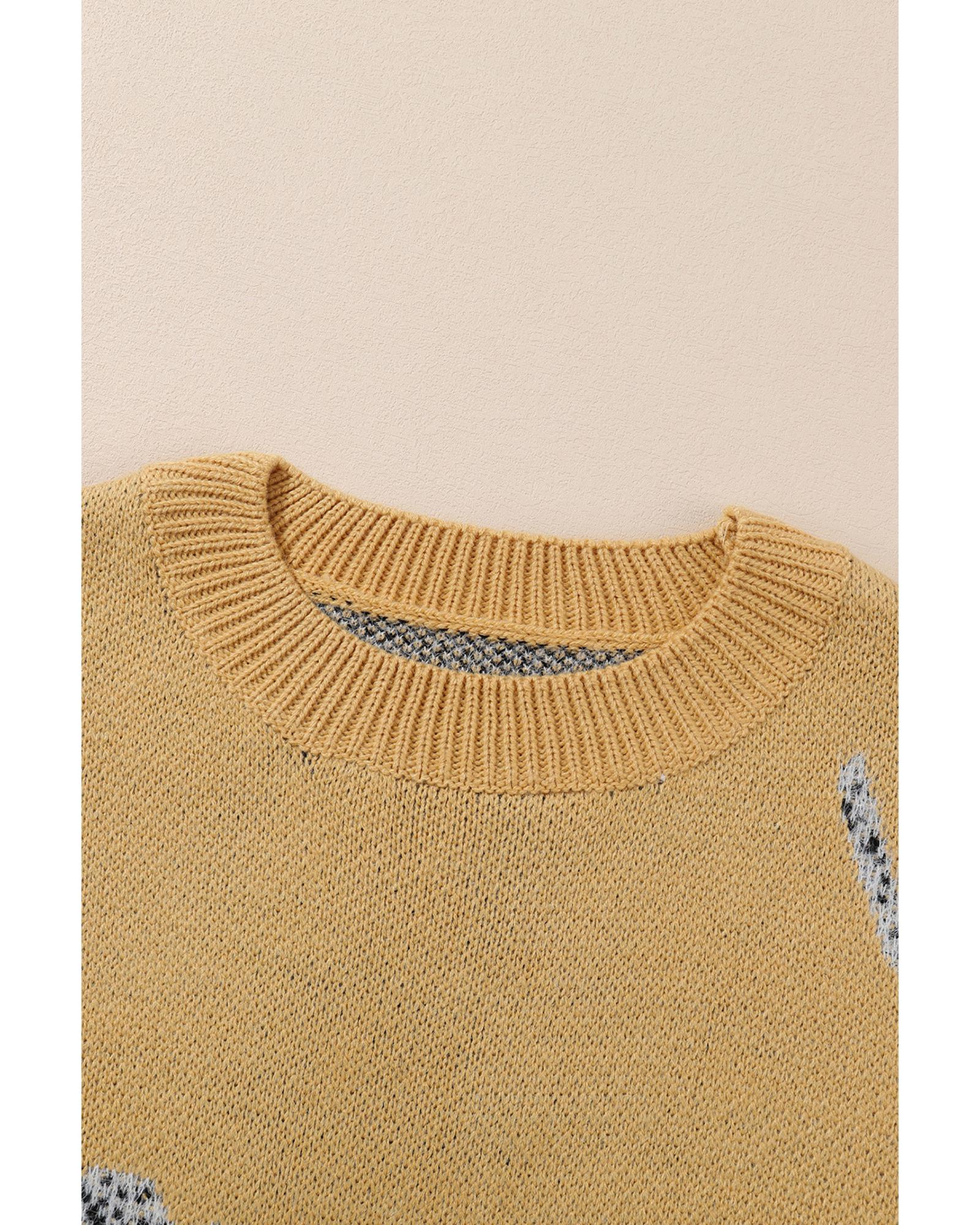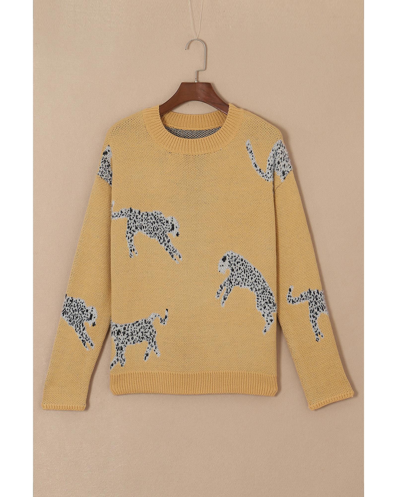 Camel Fuzzy Cheetah Accent Round Neck Sweater - XL