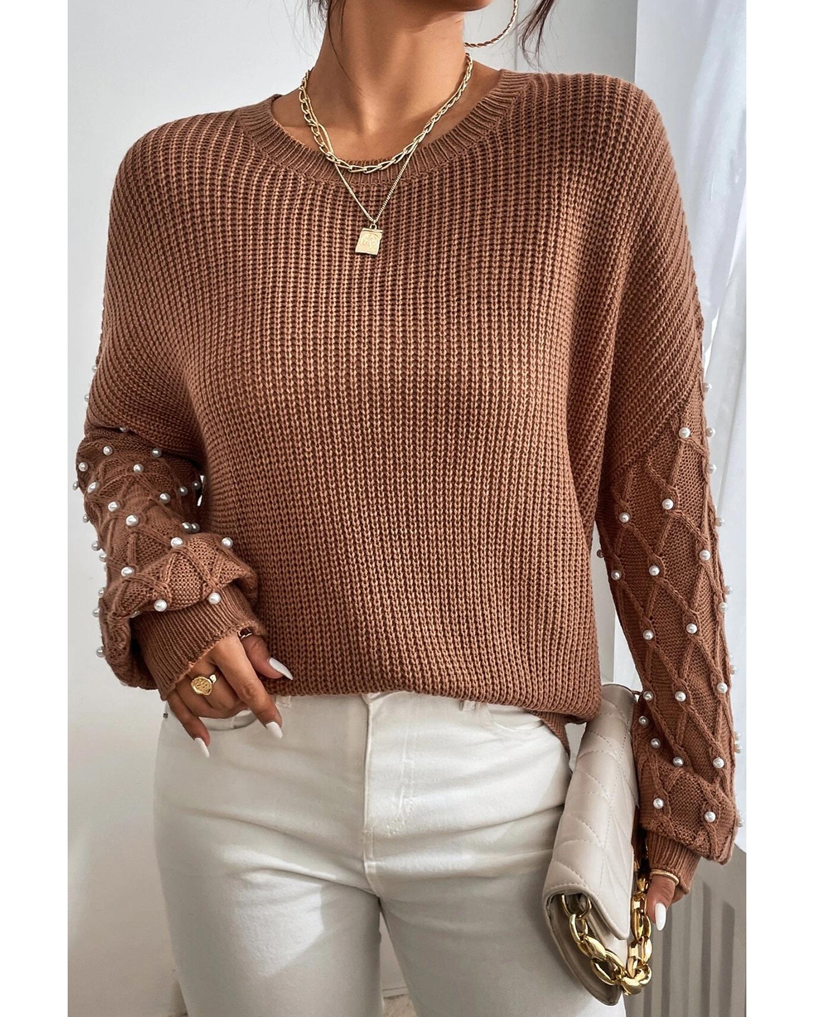 Chestnut Beaded Drop Shoulder Round Neck Sweater - XL