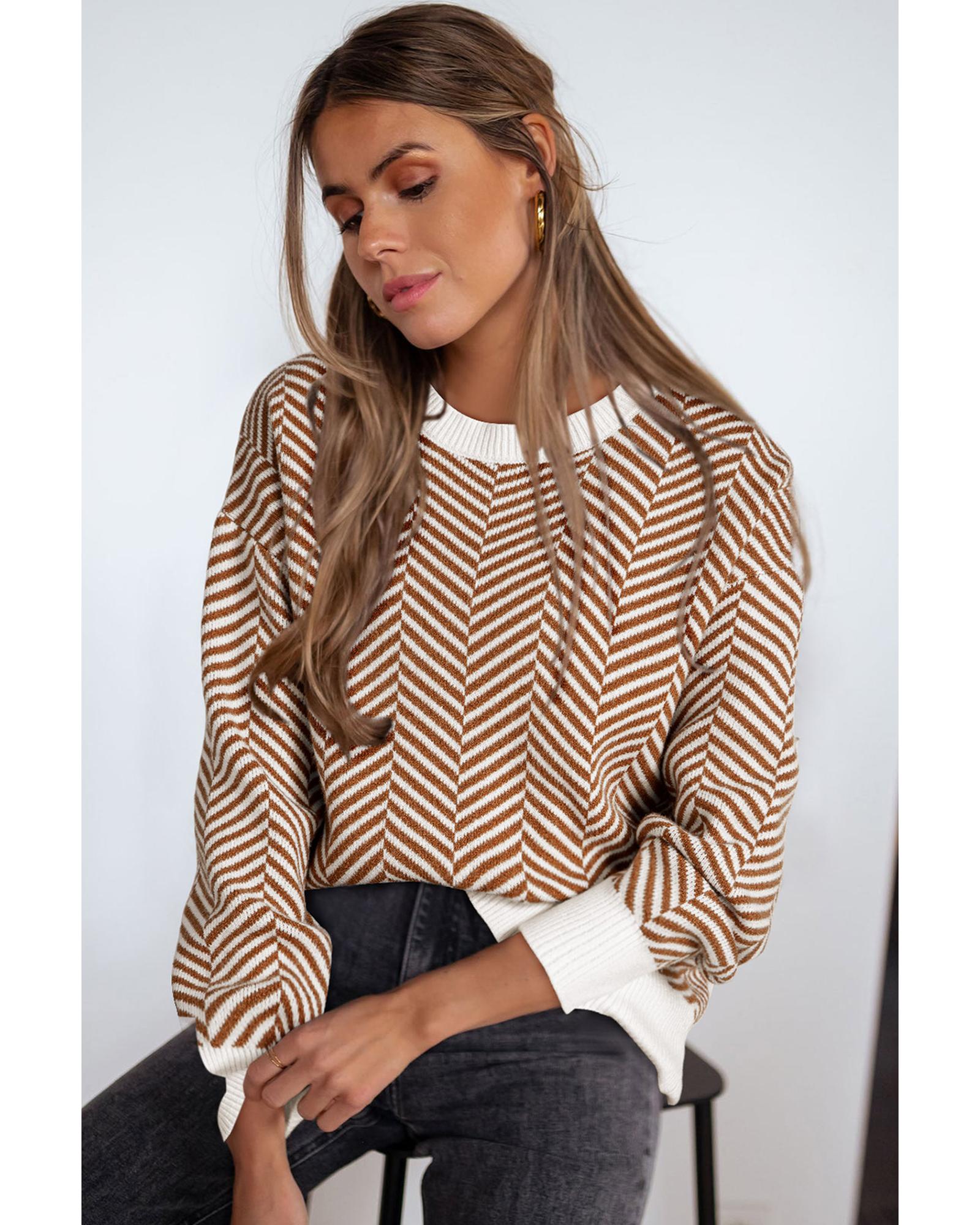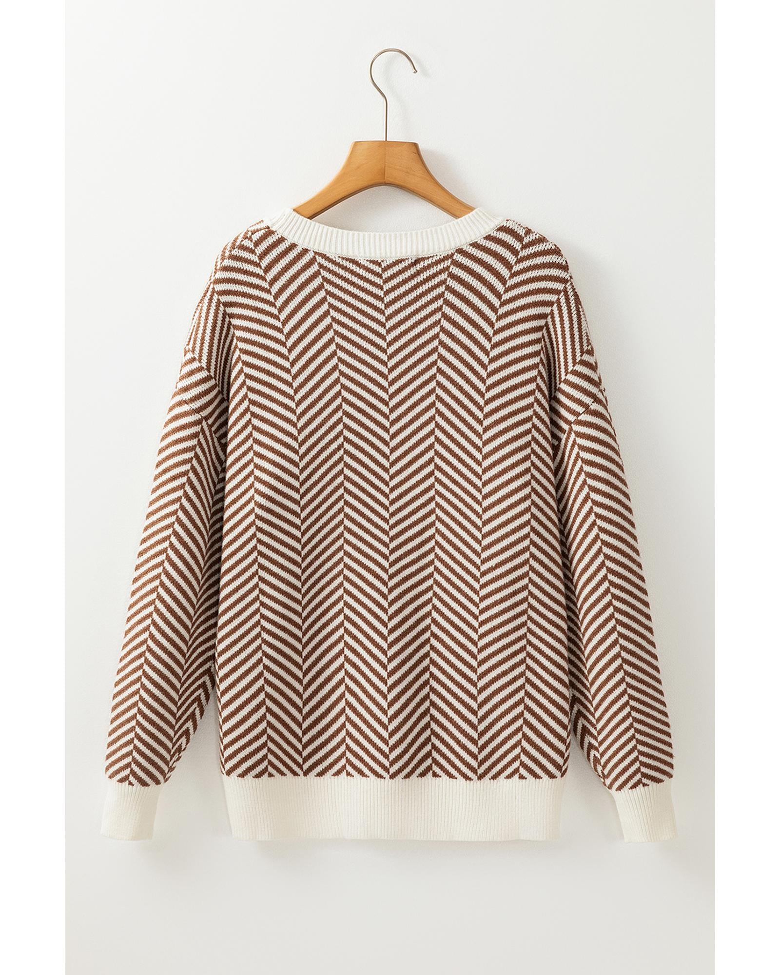 Coffee Contrast Edge Crew Neck Drop Shoulder Sweater - 2XL