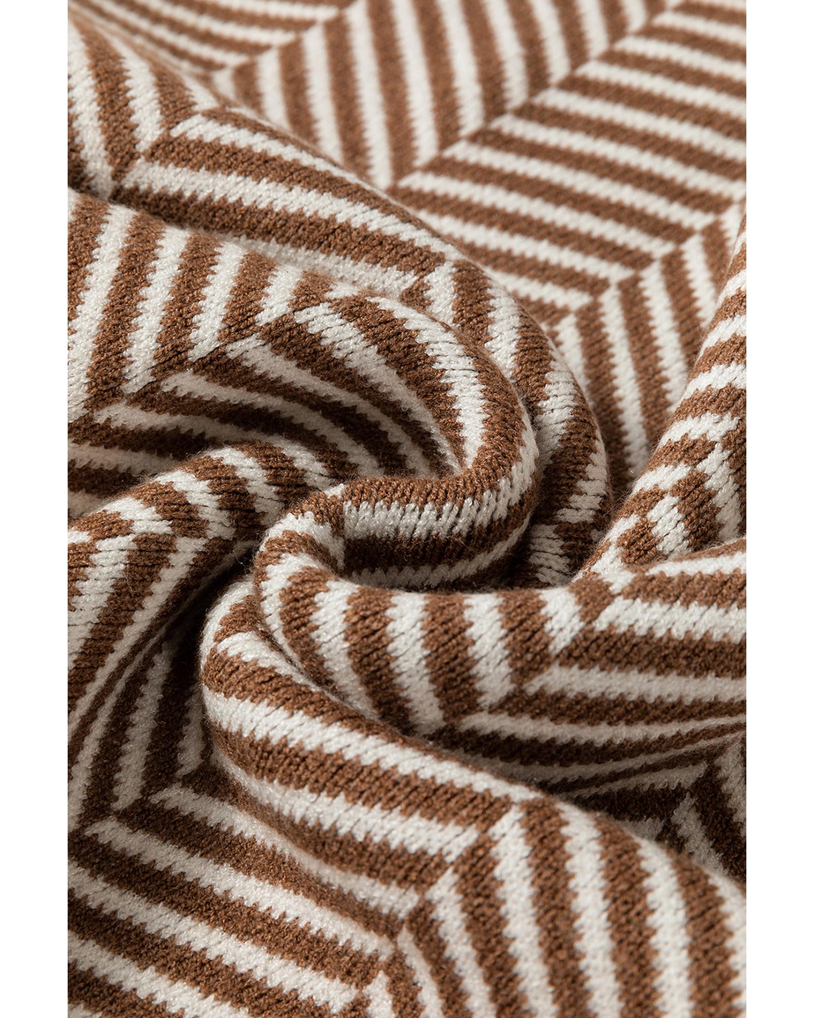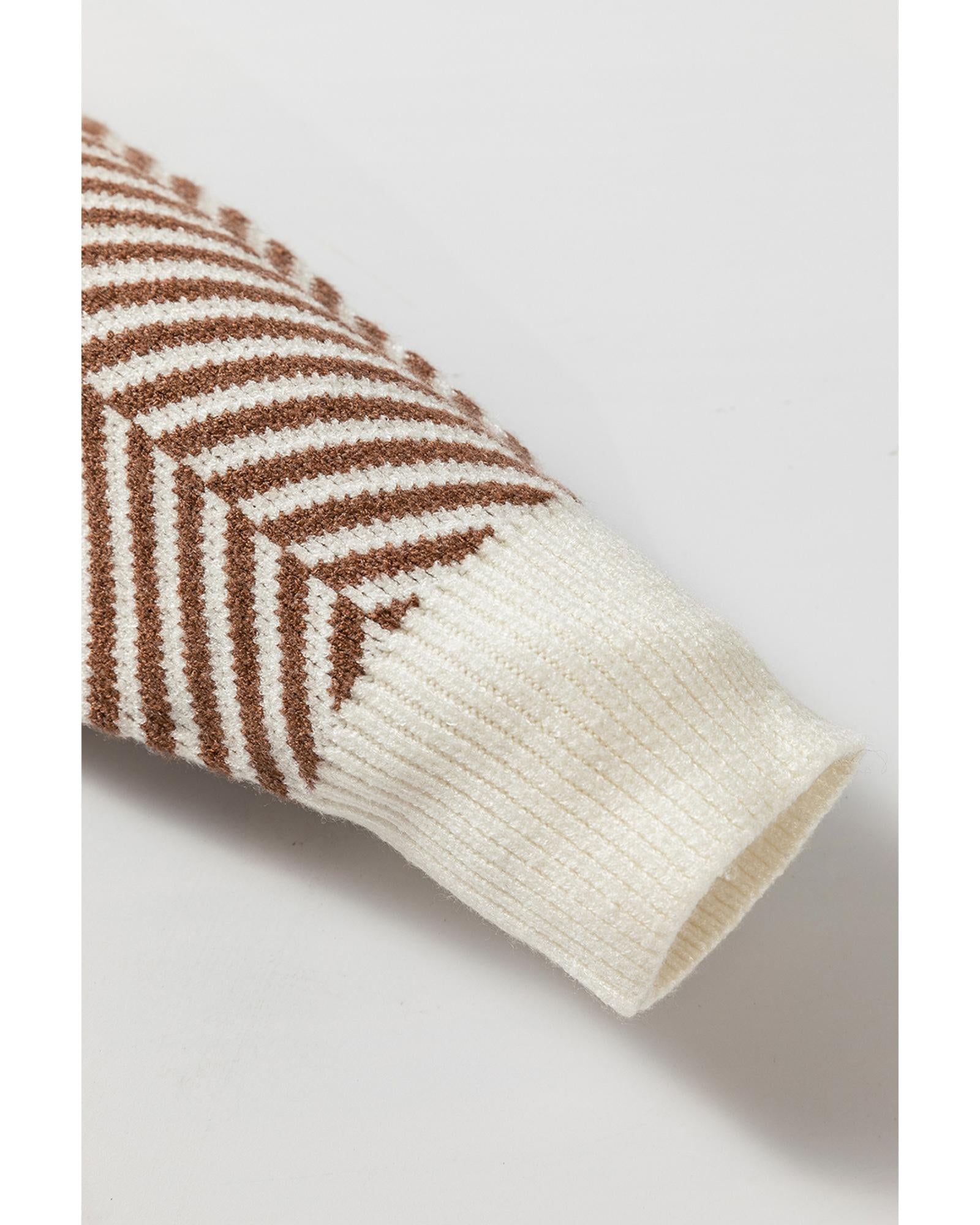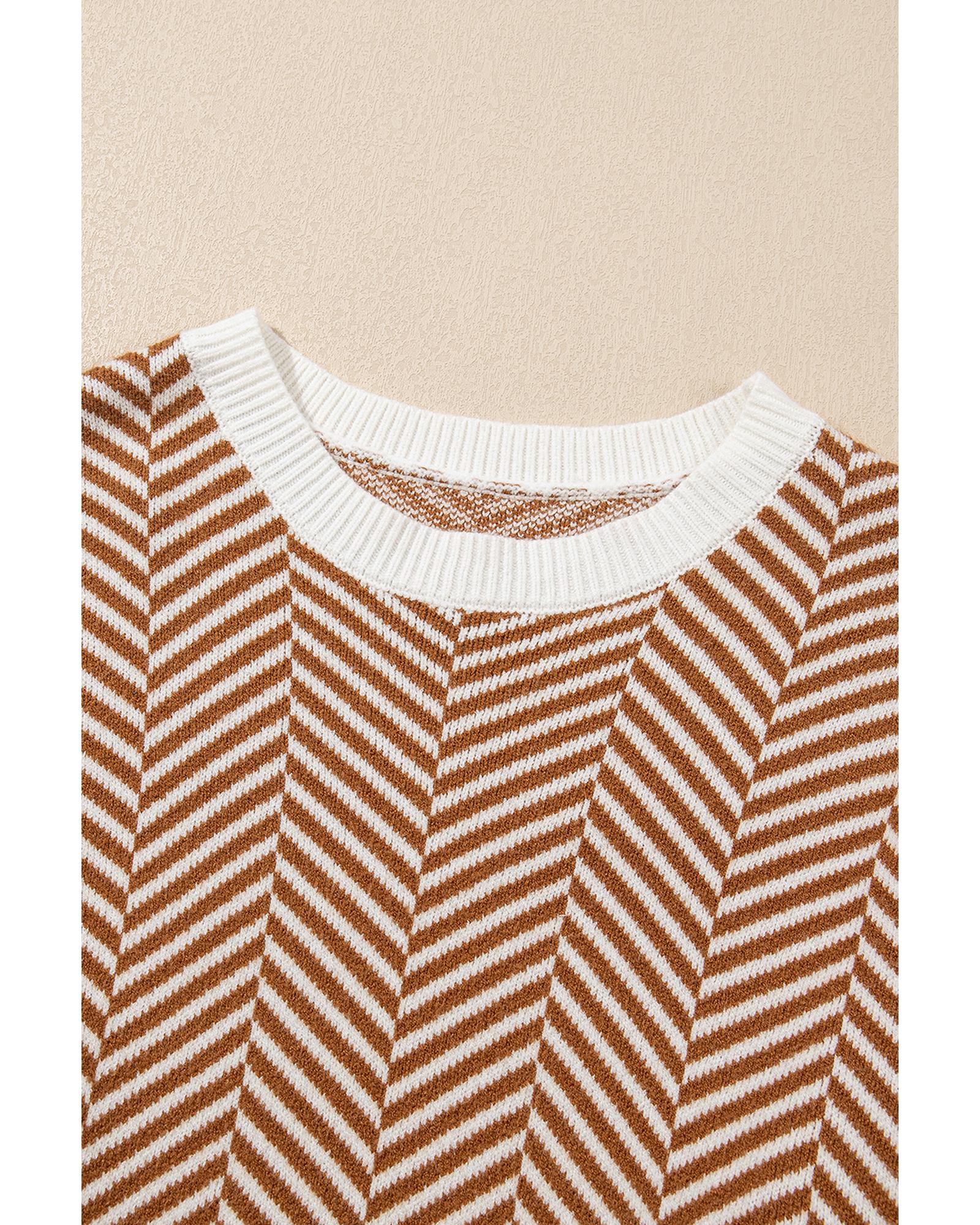 Coffee Contrast Edge Crew Neck Drop Shoulder Sweater - XL