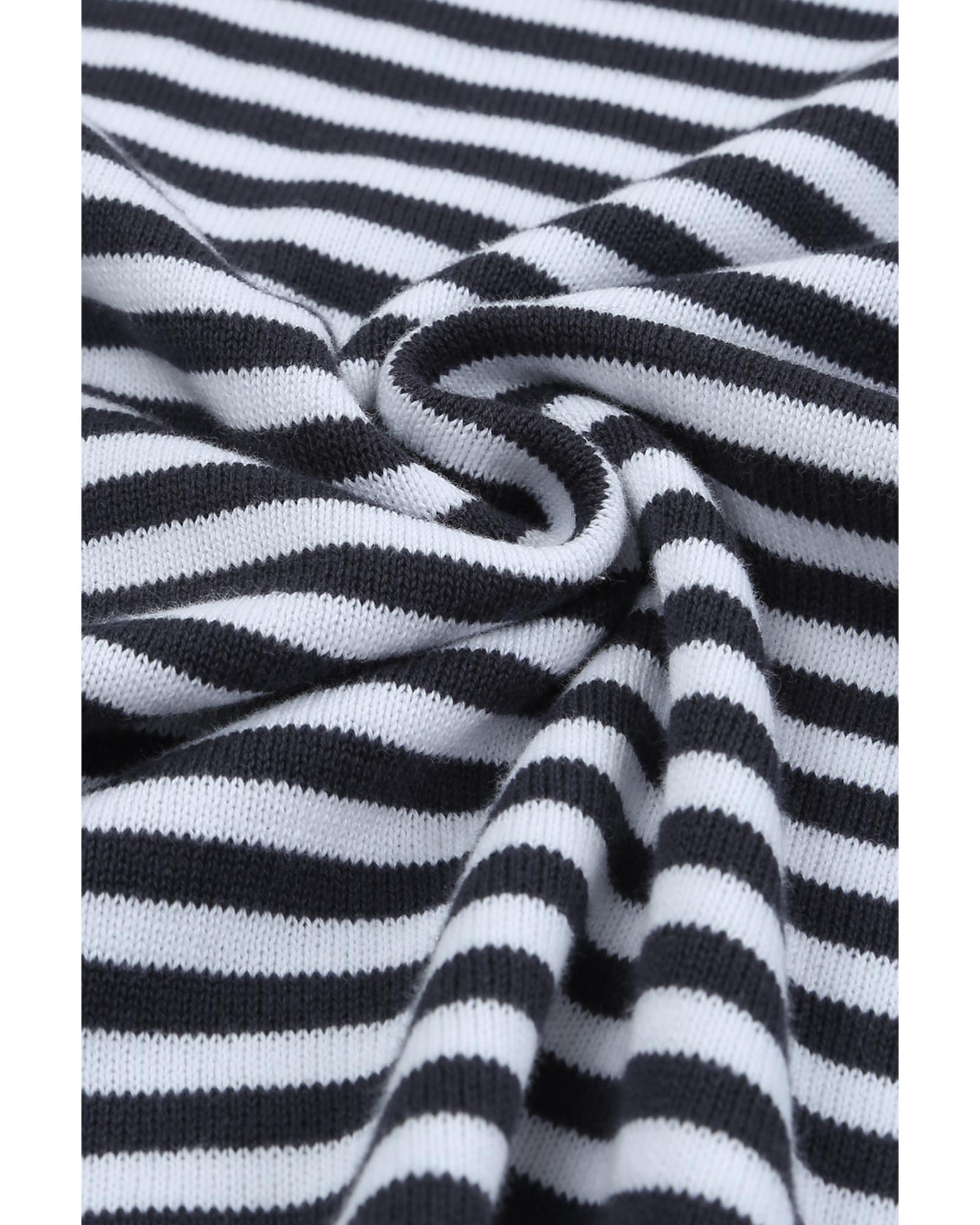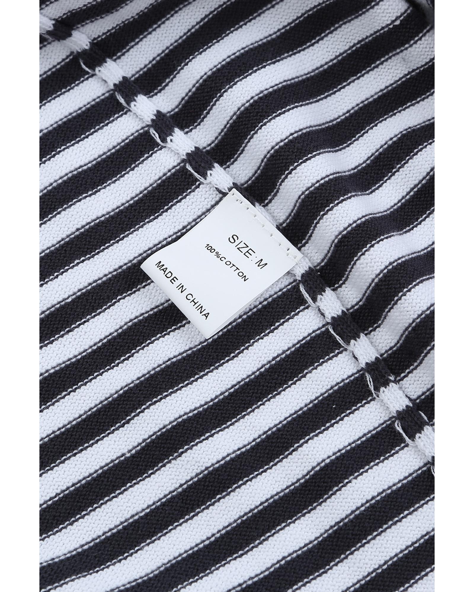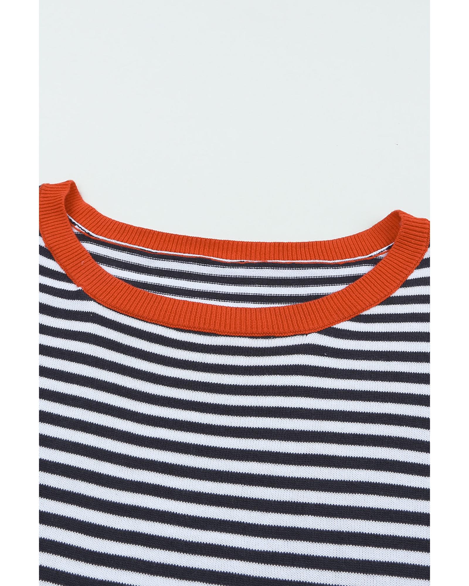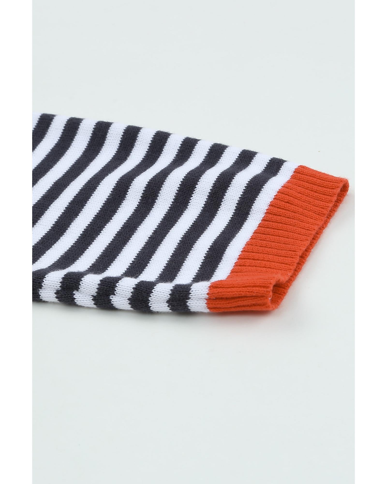 Contrast Trimmed Striped Drop Shoulder Sweater - M