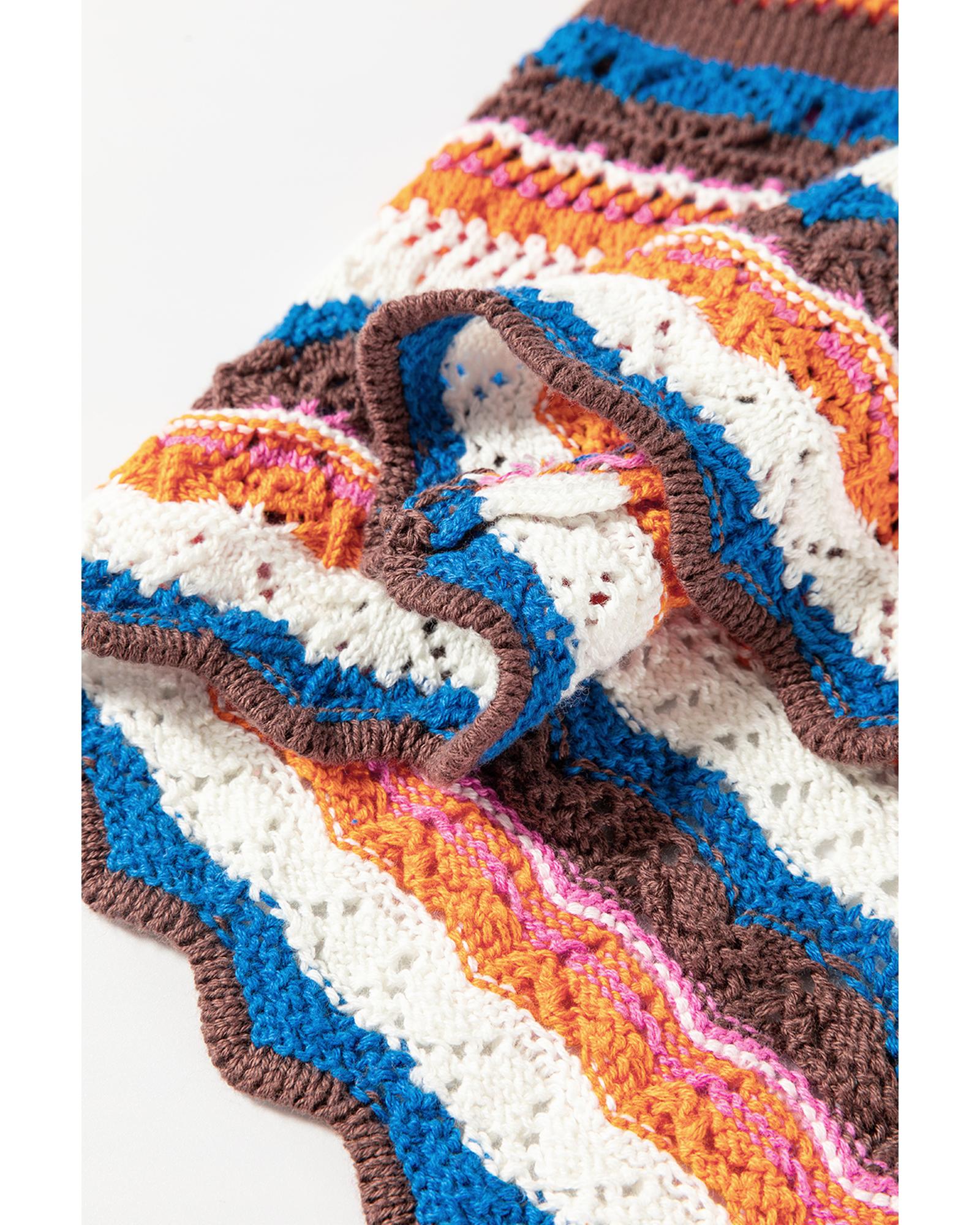 Dark Blue Striped Textured Knit Crew Neck Sweater Vest - S