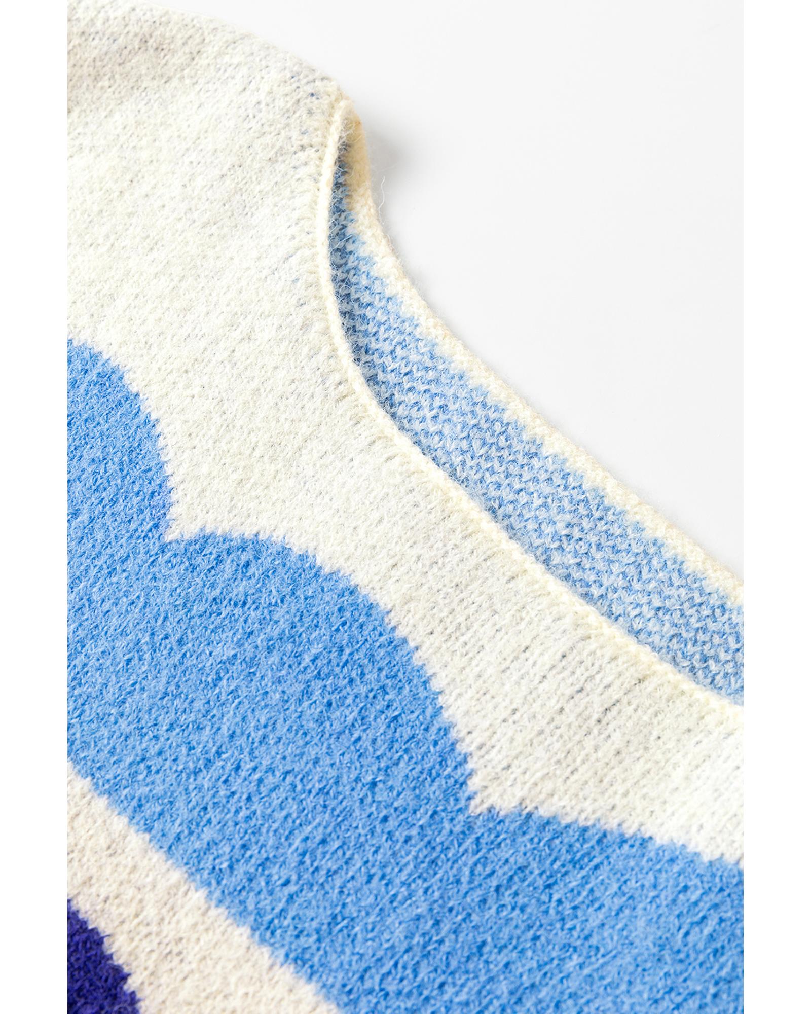 Dark Blue Wave Striped Balloon Sleeve Drop Shoulder Sweater - M