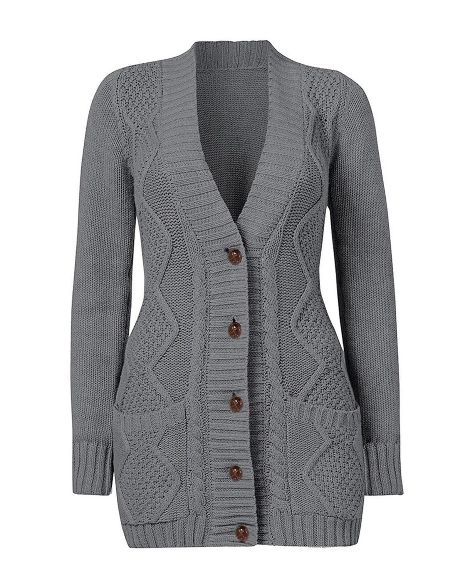 Dark Gray Front Pocket and Buttons Closure Cardigan - S