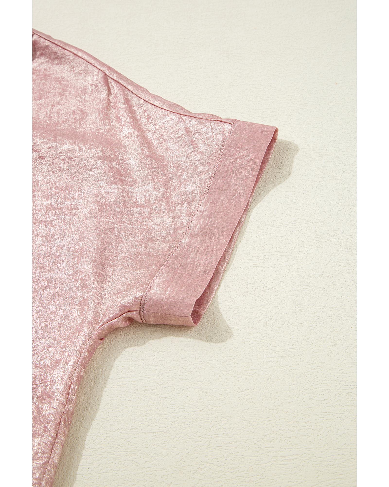 Delicacy Metallic Buttoned Loose Fit Short Sleeve Shirt - M
