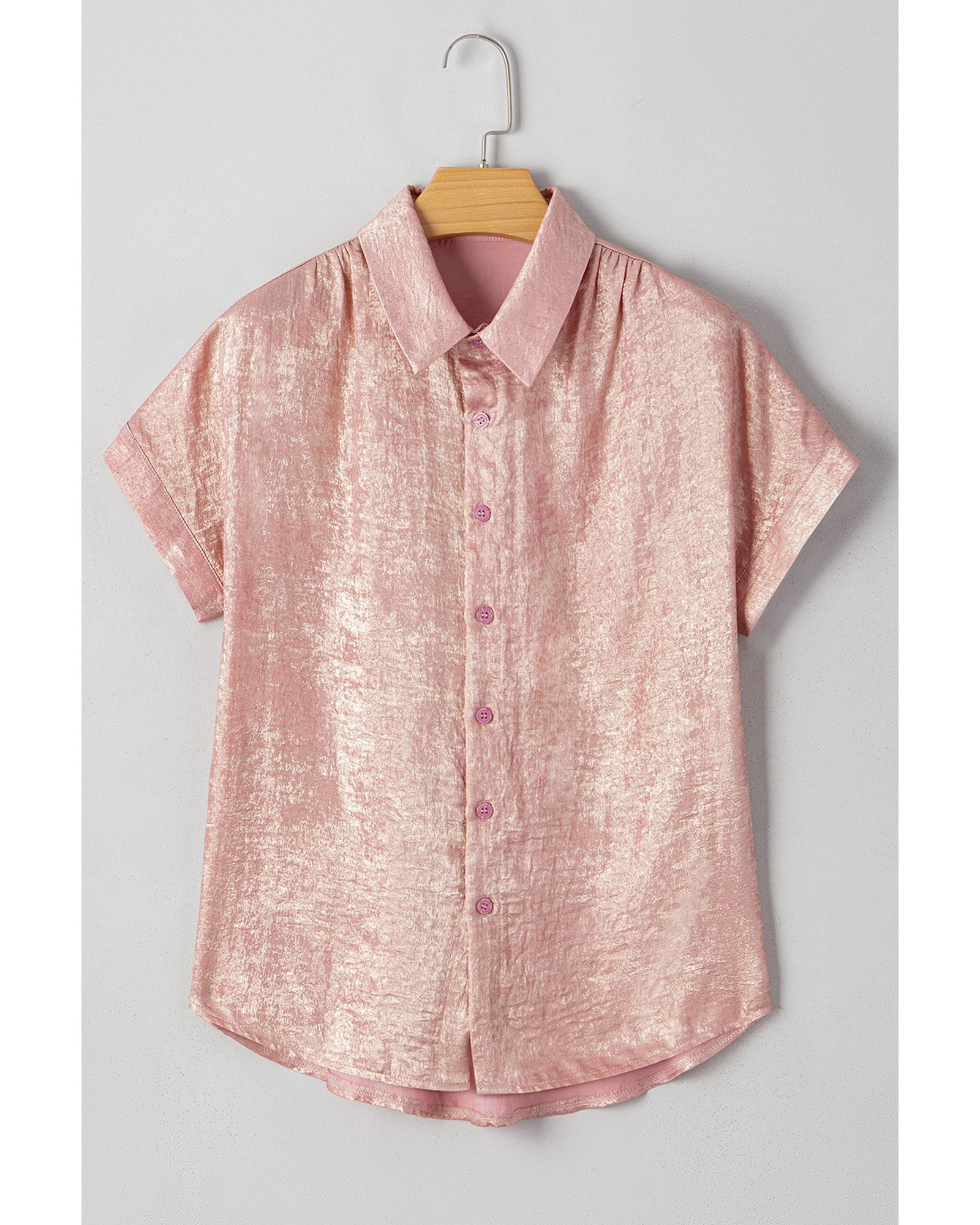 Delicacy Metallic Buttoned Loose Fit Short Sleeve Shirt - S