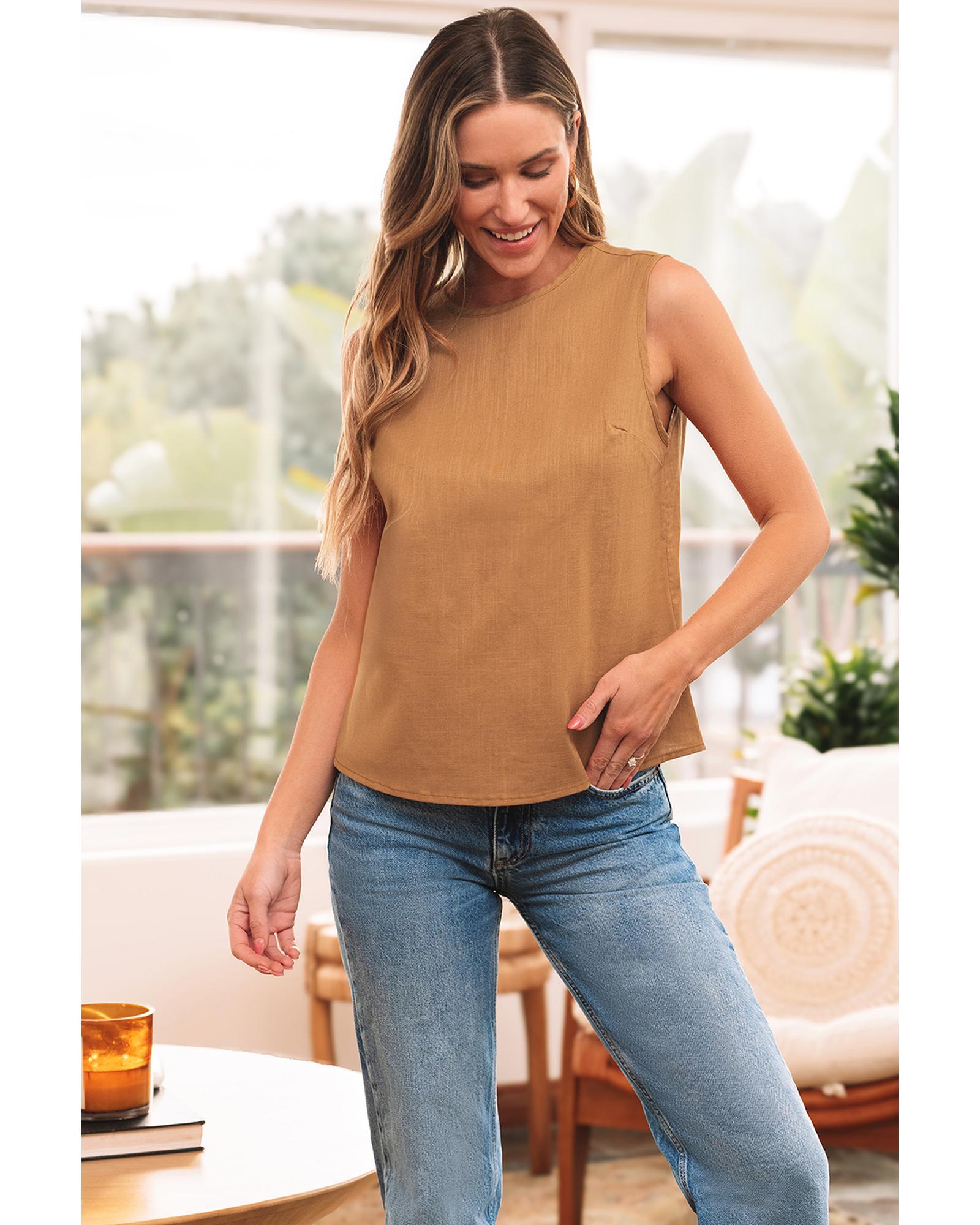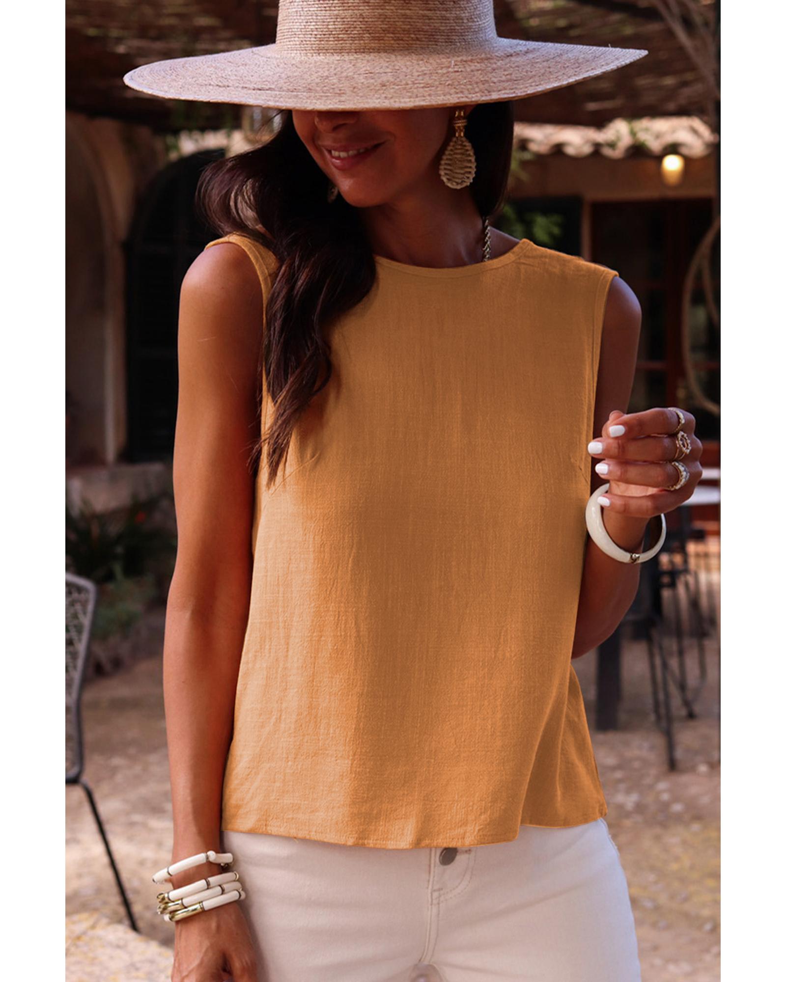 Desert Gold Bowknot V Cut Backless Cotton Tank Top - XL