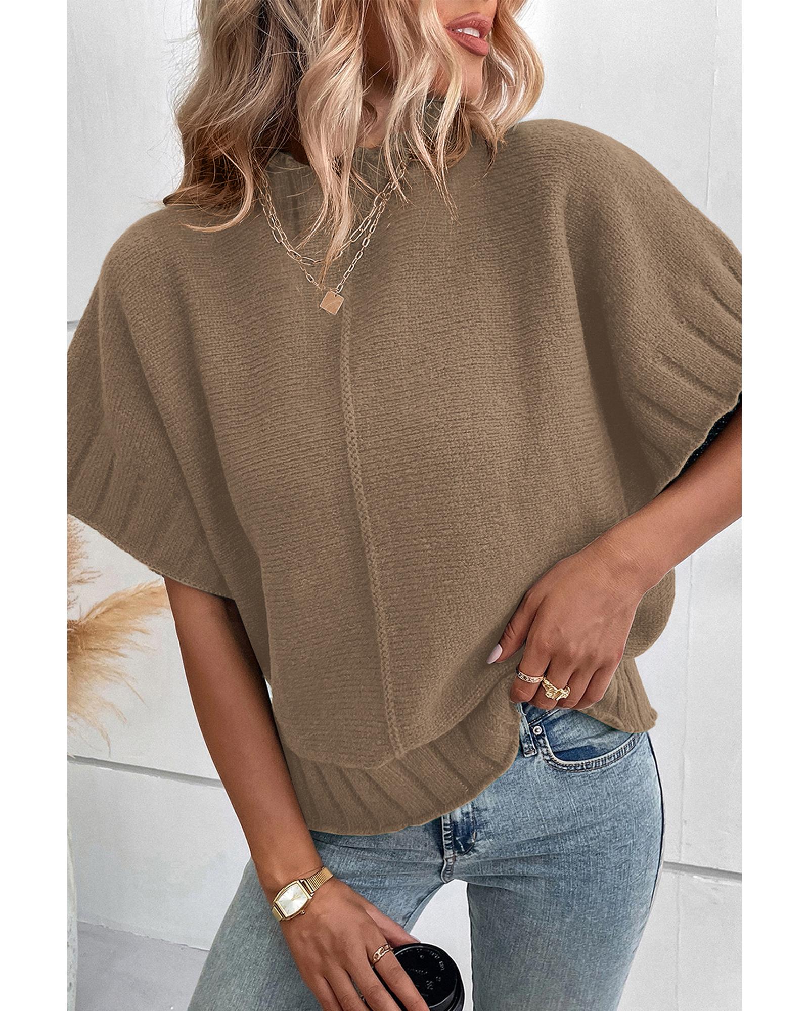 Desert Palm Mock Neck Batwing Short Sleeve Knit Sweater - XL